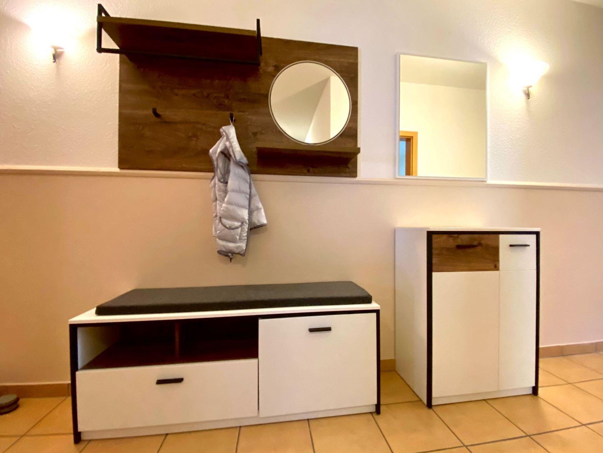 Zur weiteren Ausstattung gehören noch ein Schlafzimmer mit Doppelbett und 1 Schlafzimmer mit Einzelbett (ausziehbar für 2 Personen), sowie ein Bad mit Dusche und WC.