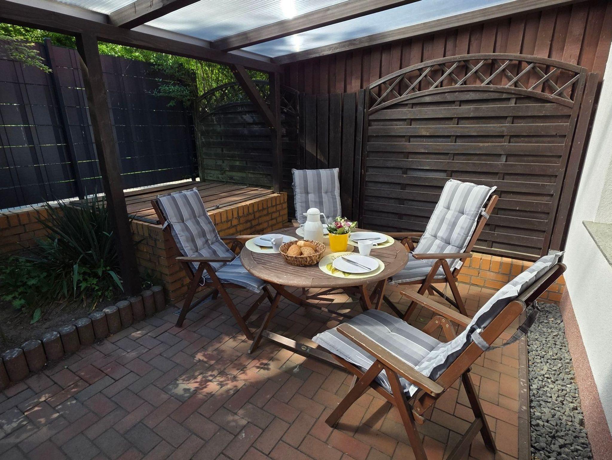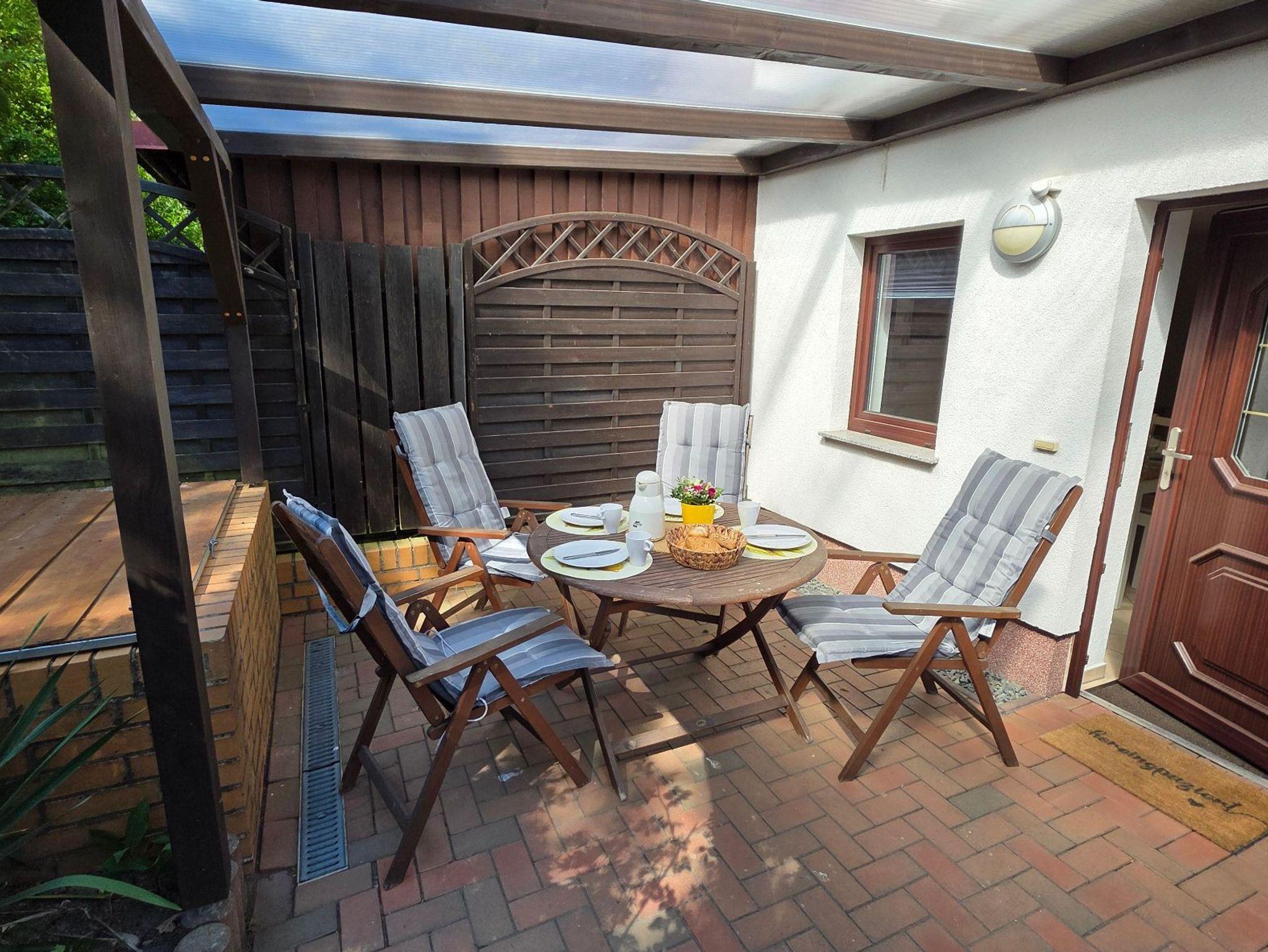 Dieses Ferienhaus verfügt über eine private überdachte Terrasse für entspannte Abende.