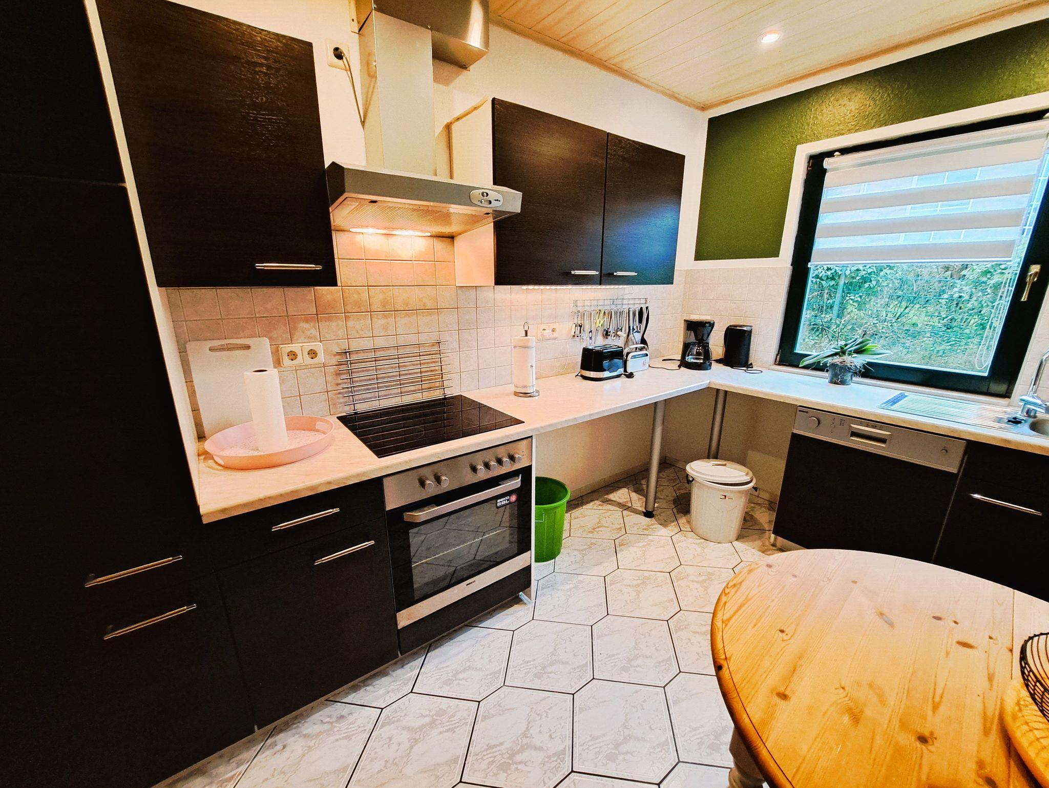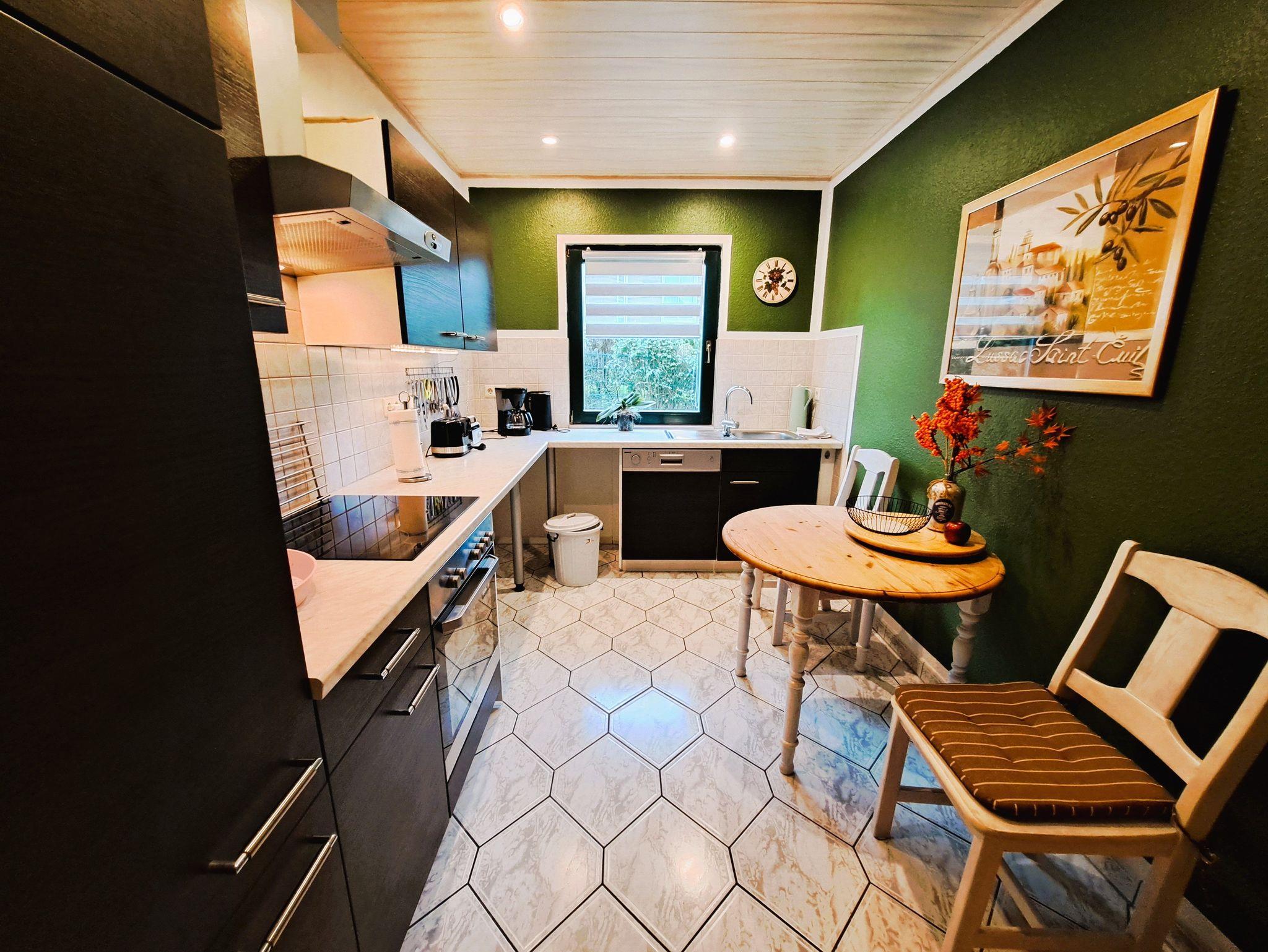 In der modernen Einbauküche mit einem gemütlichen Esstisch für zwei Personen finden Sie alles, was Sie für die Zubereitung Ihrer Mahlzeiten benötigen. Ein Tiefkühlschrank ist nicht vorhanden. Auf Wunsch können Ihre Gastgeber etwas für Sie lagern, wenn nötig.