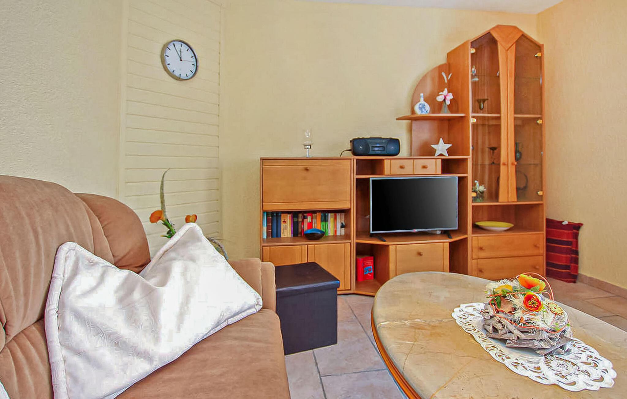 Feriehuset ligger frittliggende og på bakkeplan på eierens 2000 kvadratmeter store boligeiendom, bare ca. 100 meter fra strandpromenaden og det offentlige svømmebassenget på Müritz. Det er utstyrt med: Stue (stoppede møbler, sittegruppe, LCD-TV, radio/CD), åpen kjøkkenløsning (elektrisk komfyr, kjøleskap med frysedel, mikrobølgeovn, oppvaskmaskin, spisebord, diverse kjøkkenutstyr), soverom (dobbeltseng), dusj/WC, sentralvarme. Eieren driver et lite vaskeri på eiendommen. Til din disposisjon: Terrasse med sitteplasser og solsenger, grill og parkeringsplass samt W-LAN. Sluttrengjøring, vann og energi er inkludert i totalprisen. Vennligst ta med egne håndklær og sengetøy. Betales på stedet: Turistskatt. Kjæledyr er ikke tillatt på denne eiendommen.