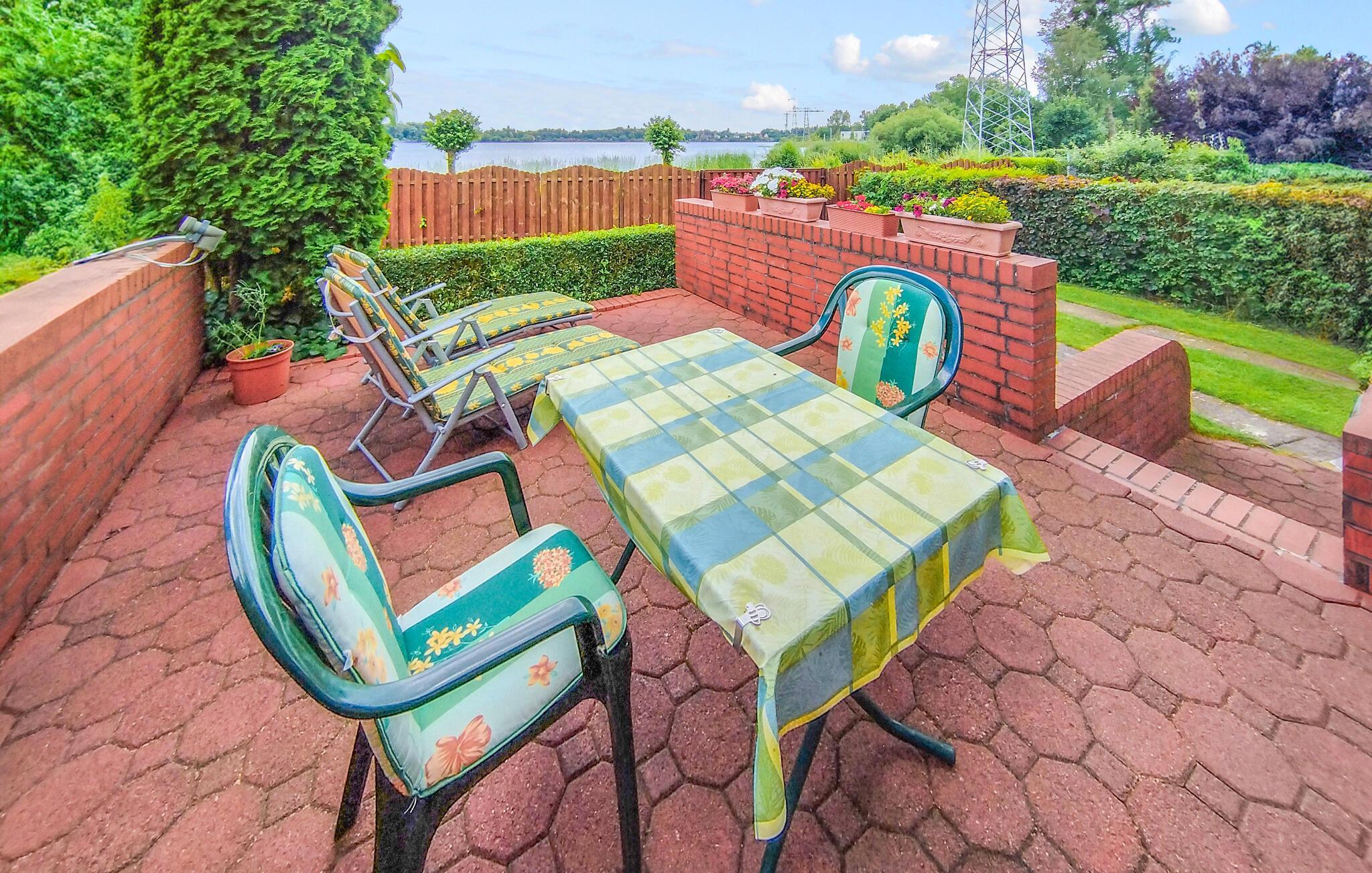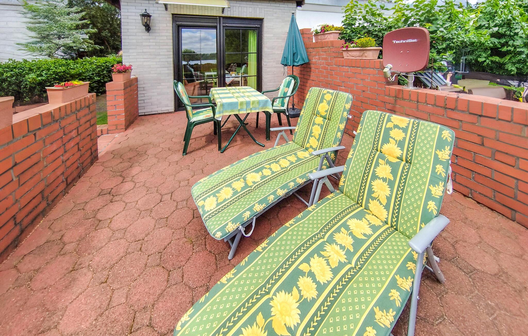 Eiernes separate ferieleilighet ligger rett ved Tiefwarensee, i første etasje i en boligbygning på en ca. 500 kvm stor, fullstendig inngjerdet boligeiendom. Et naturlig badeområde ligger bare noen få meter unna, og tilgangen til innsjøen er kun avbrutt av en sykkel- og tursti. Det er også en annen ferieleilighet i huset. Den ca. 40 kvadratmeter store røykfrie leiligheten ble renovert i 2021 og har sentralvarme. Den har stue (sovesofa, spisebord, smart-TV med Netflix-tilbud, ekstra LAN-tilkobling) og soverom (dobbeltseng), liten kjøkkenkrok (induksjonstopp, kjøleskap med fryseboks, mikrobølgeovn, varmluftsovn, diverse små kjøkkenapparater) og bad (dusj, toalett). Det er også en møblert terrasse med utsikt over innsjøen, solsenger, grill, en lukket parkeringsplass på eiendommen og gratis WiFi. Totalprisen inkluderer sluttrengjøring, vann- og energiforbruk. Du kan ta med eget sengetøy og håndklær eller leie dem. Betales på stedet: Turistskatt.