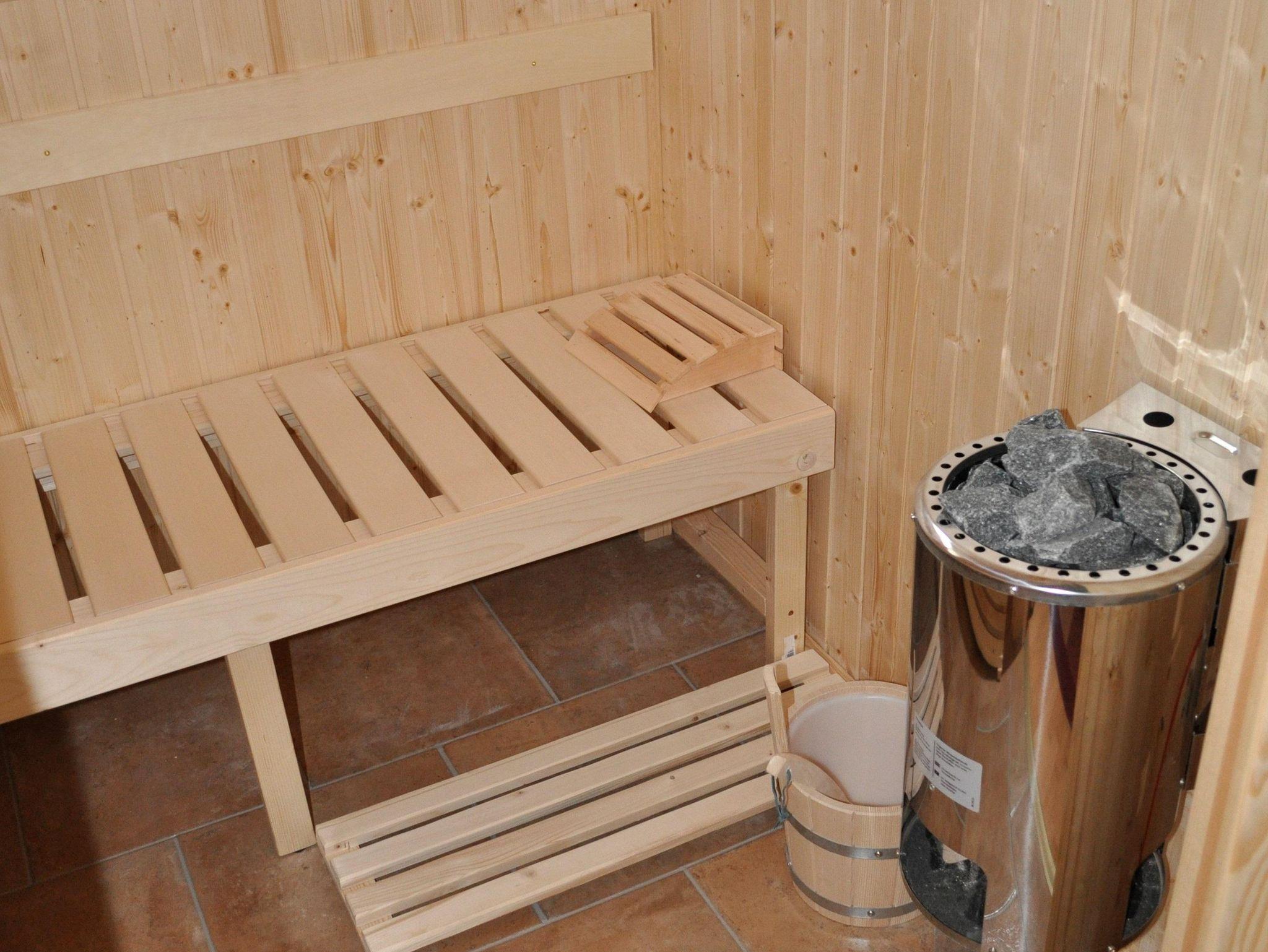 Im Obergeschoß befinden sich 2 Badezimmer, eine Sauna, sowie die Schlafräume.