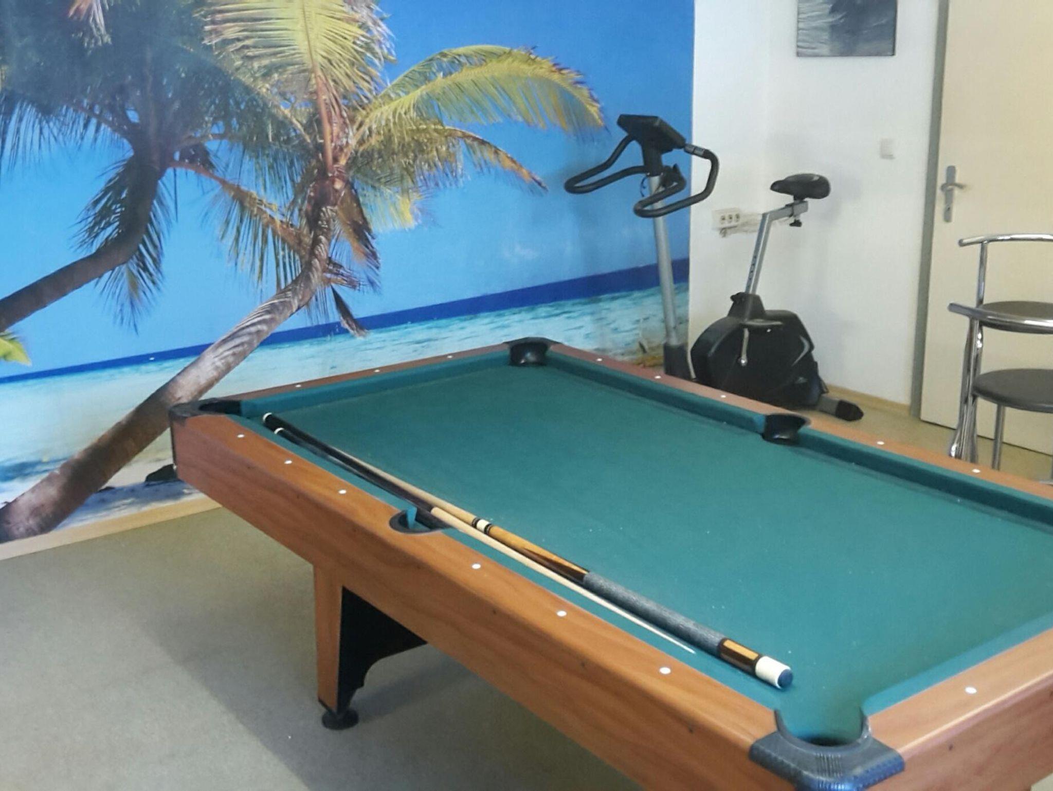 Durch einen Nebeneingang erreichen Sie den Freizeitraum mit Billardtisch, Dartspiele, Musikanlage und einen Crosstrainer.