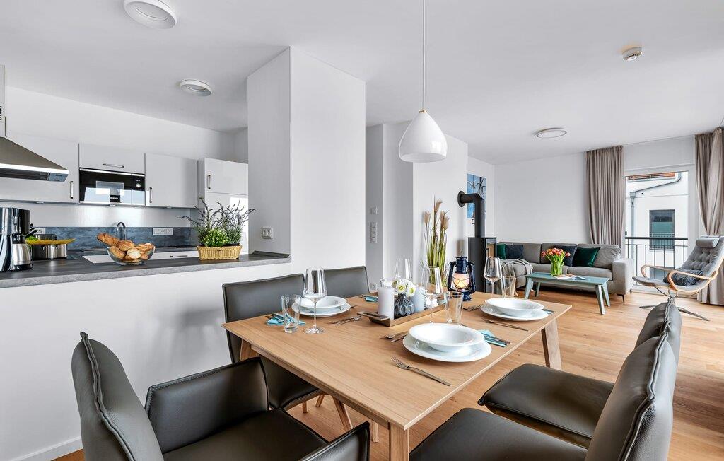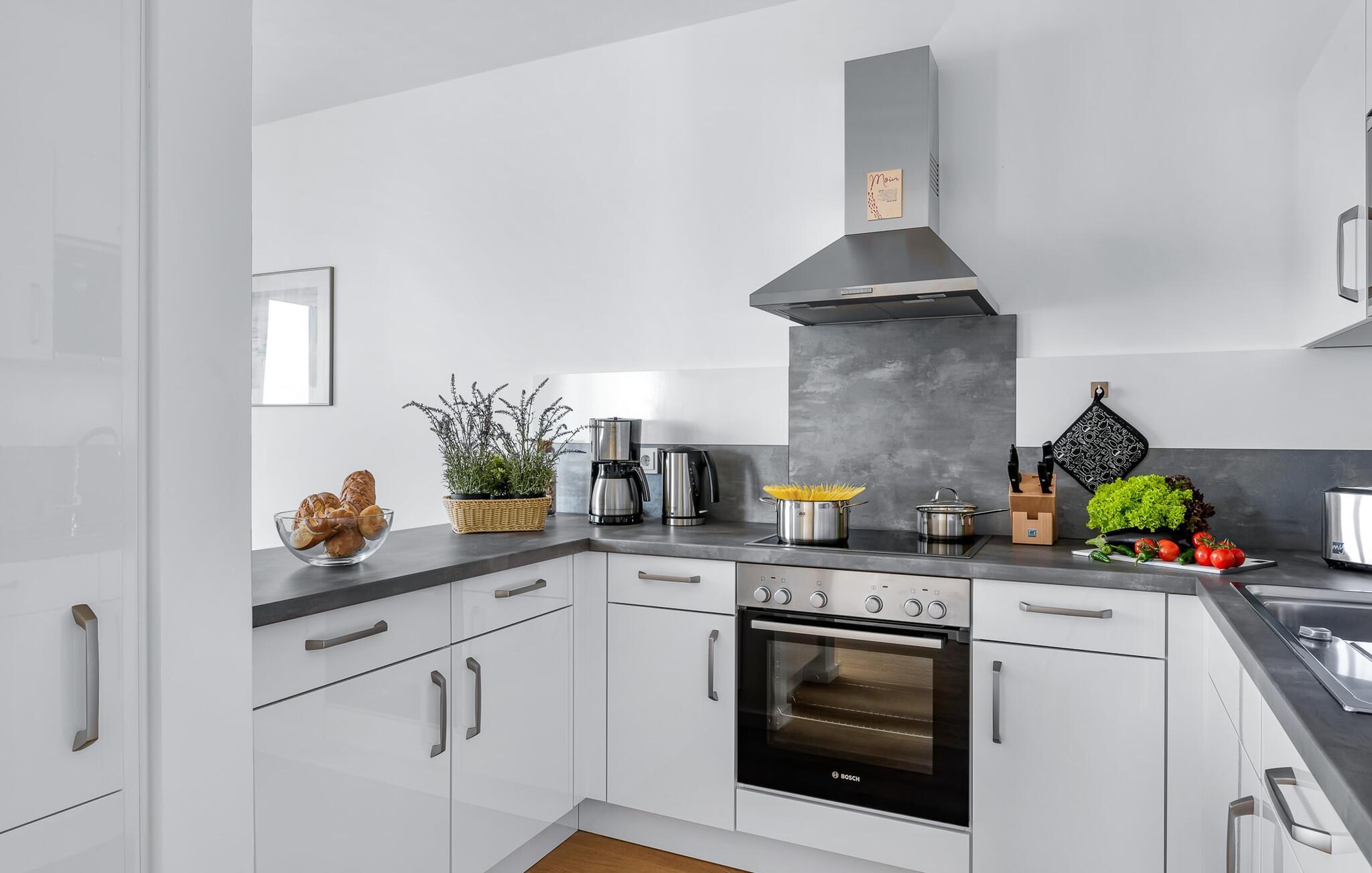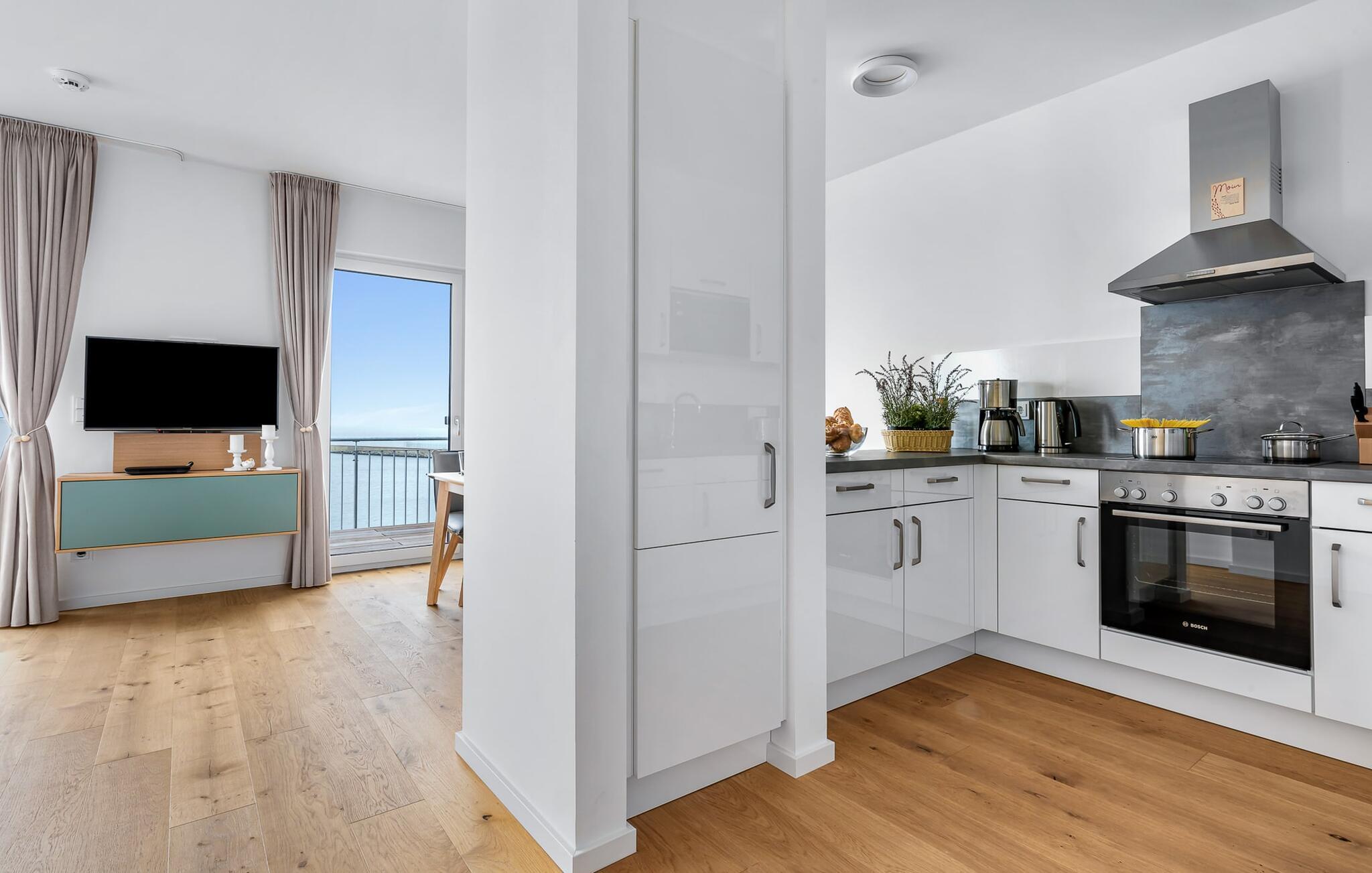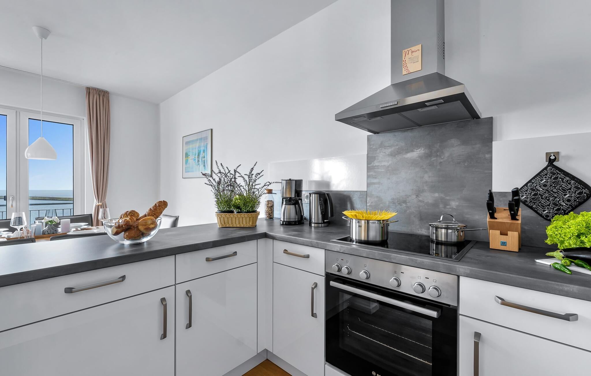 Det perfekt utstyrte kjøkkenet lar ikke noe tilbake å ønske, og du kan glede deg til å lage mat. Å spise sammen på balkongen etterpå er en fornøyelse hver dag på nytt - hva mer kan du ønske deg fra havet?