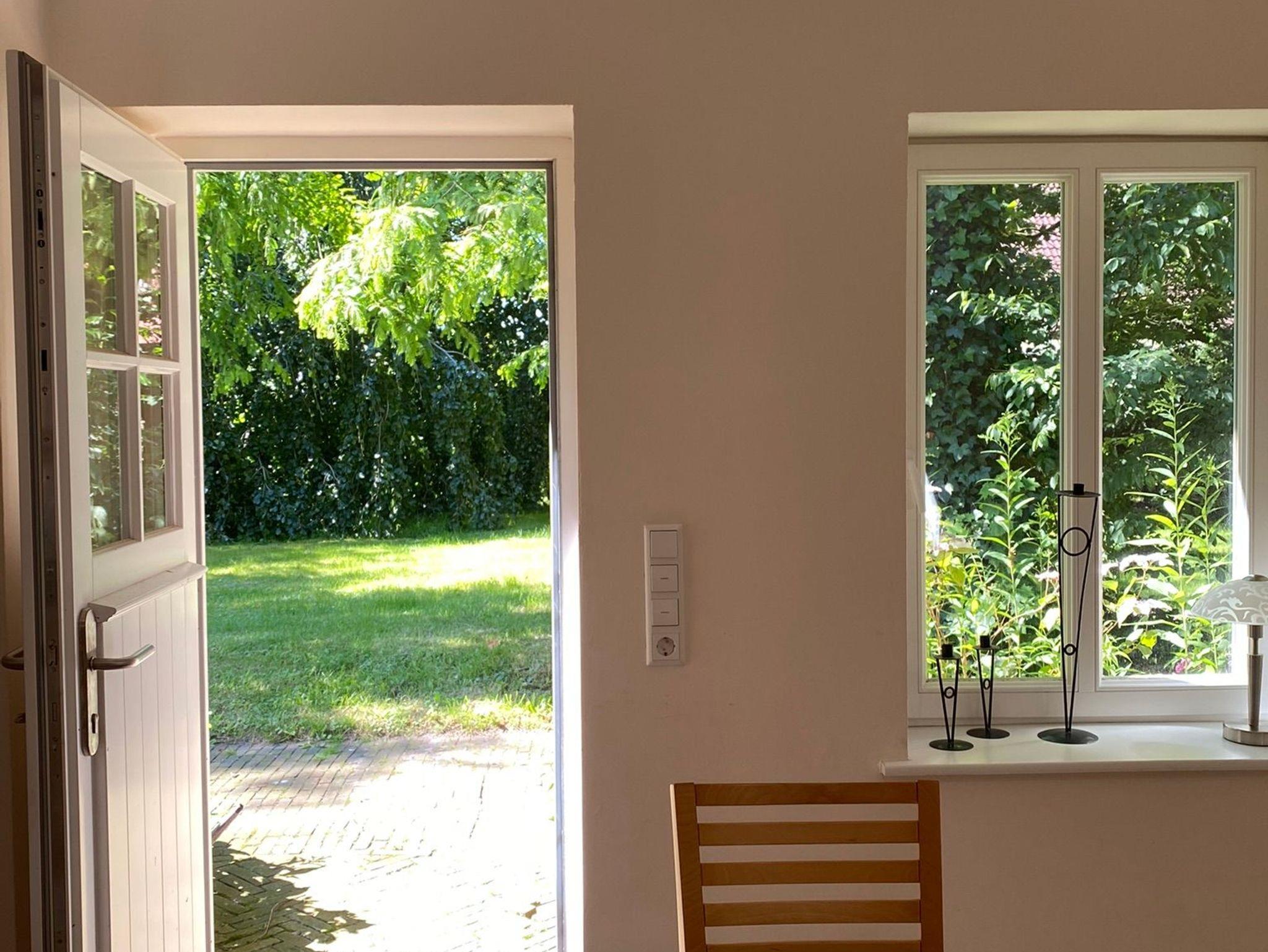 Der Garten mit Terrasse, sowie das Gartenhäuschen mit Spielgeräten, Gartenliegen und Strandkorb können genutzt werden.