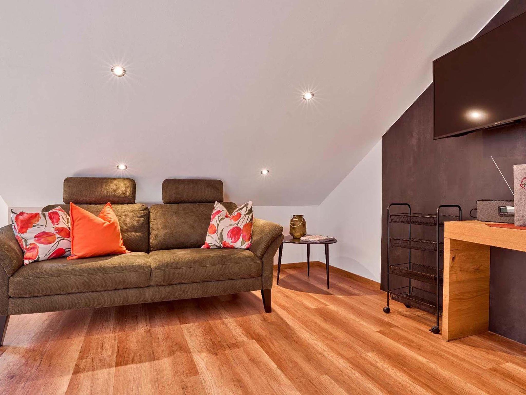 Eine von zwei neu gebaute Wohnungen im Dachgeschoss unseres Ferienhauses. Luxuriöse Ausstattung mit vom Schreiner gefertigten Möbeln und edlen Polstermöbeln.