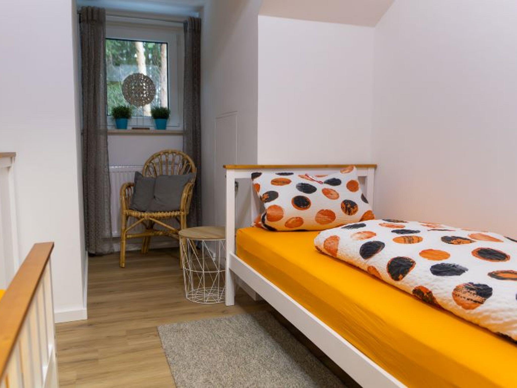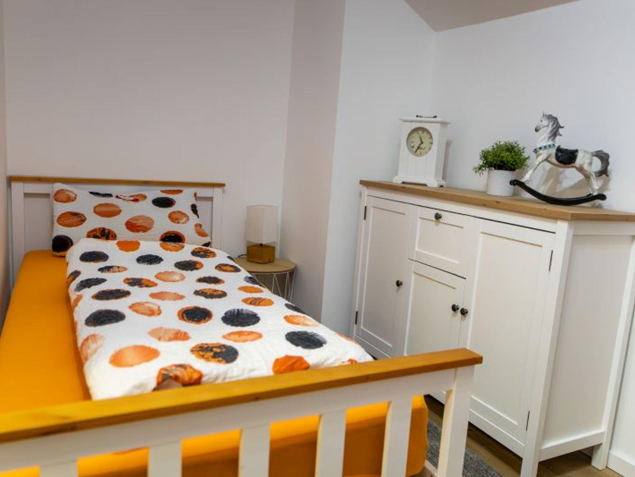 Das Schlafzimmer ist mit einem großen Kleiderschrank, einem Doppelbett (160cm x 200cm) mit zwei Nachttischen augestattet.