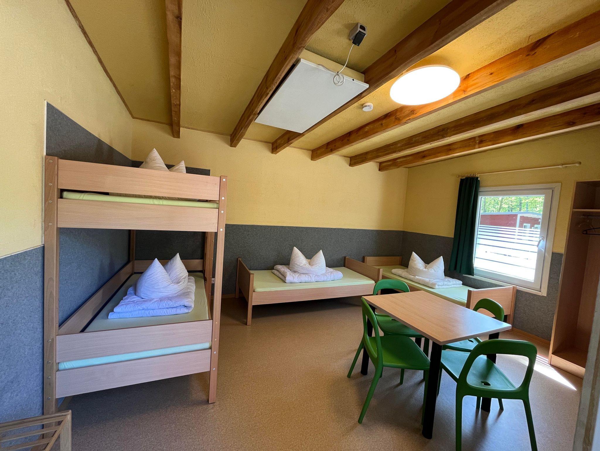 Unsere Bungalows liegen idyllisch am Wasser und wurden 2022 neu errichtet. Sie sind beheizbar und mit einem Etagenbett sowie zwei Einzelbetten, Schrank, Tisch und Stuhl ausgestattet, es befinden sich KEINE Toiletten und Duschen in den Bungalows. Die Sanitäranlagen befinden sich in einem zentralen Wasch- und Duschgebäude.