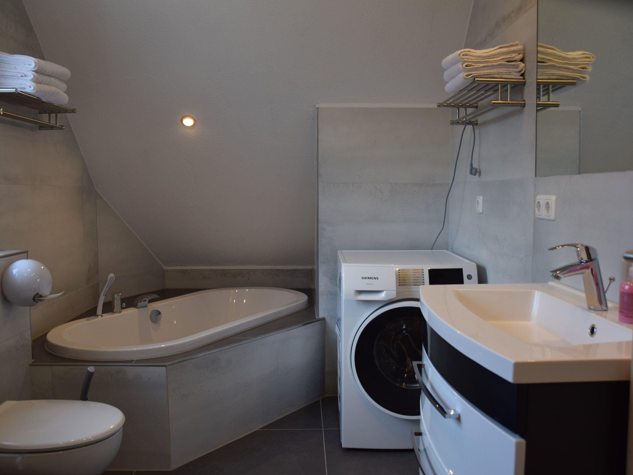 Die drei Schlafzimmer sind wie folgt aufgeteilt. Zwei Schlafzimmer mit Doppelbett (160 + 140 breit), ein separates Kinderzimmer mit zwei Einzelbetten. Es steht noch ein Schlafsofa zur Verfügung. Das Badezimmer ist mit Badewanne, Dusche und WC ausgestattet.
