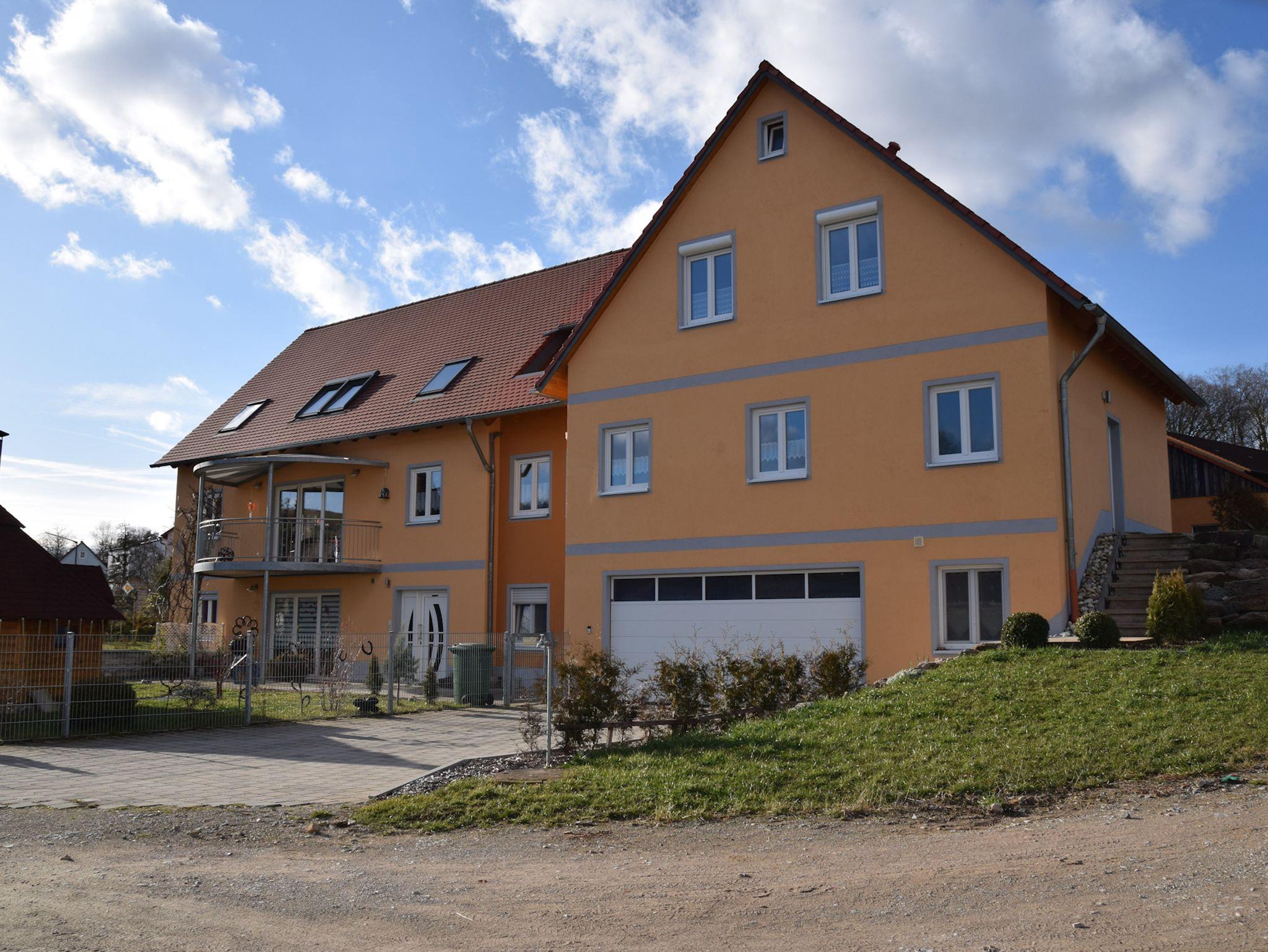 Die Ferienwohnung ist ca. 85 m² groß und befindet sich im 1. Stock des Nebengebäudes. Sie können mit bis zu 6 Personen bei uns übernachten. Die Wohnung verfügt über eine voll eingerichtete Einbauküche mit Kühlschrank, Gefrierschrank, Spülmaschine und Elektroherd mit Glaskeramikkochfeld, Mikrowelle; diverse Kleingeräte sind auch vorhanden. Im komibinierten Ess- und Wohnbereich befindet sich ein Esstisch mit sechs Stühlen. Das Wohnzimmer ist mit einem Ecksofa und TV ausgestattet. Die angrenzende Dachloggia nach Süden mit Sitzgelegenheit ist das Highlight der Wohnung.