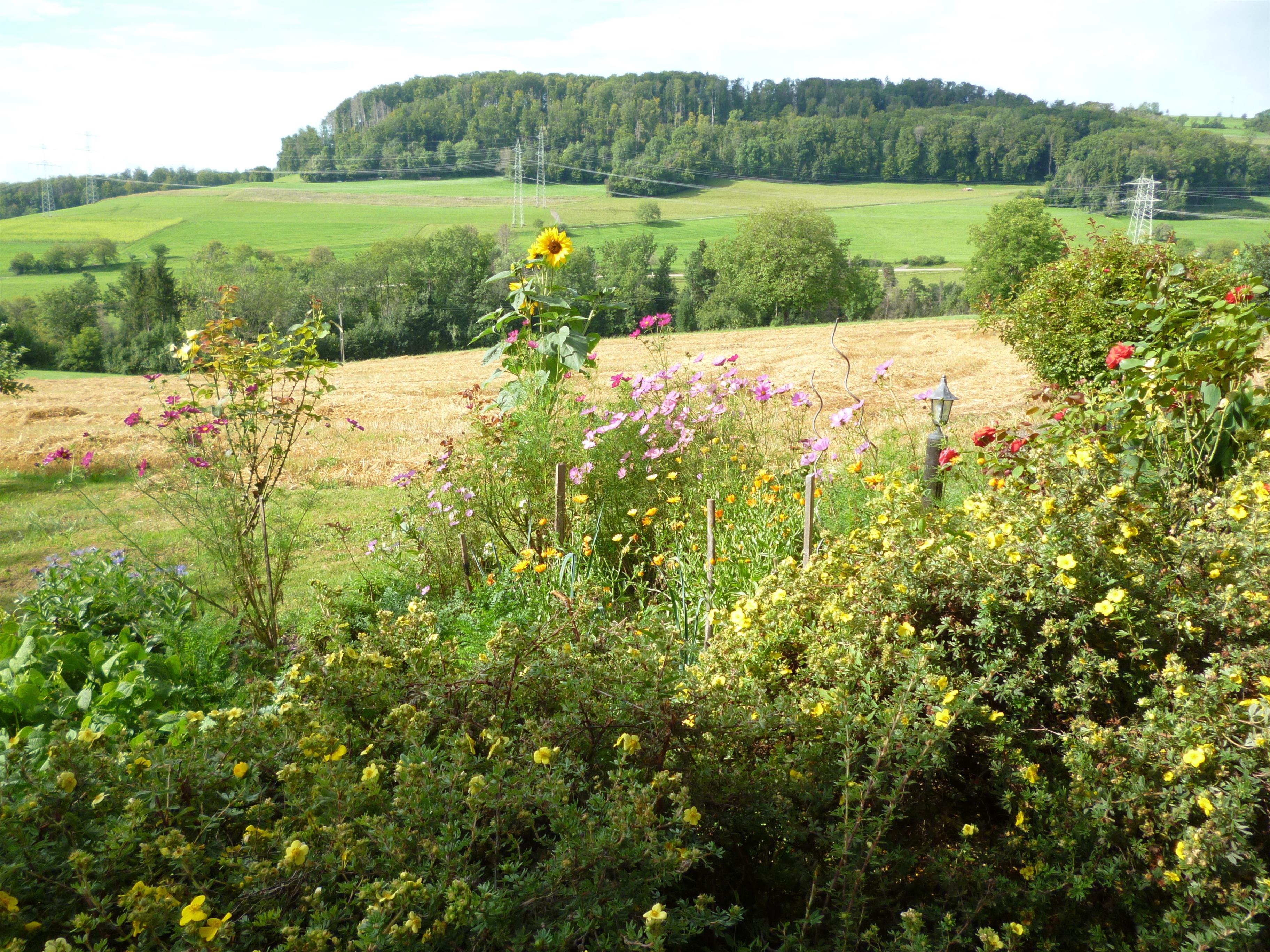 auf der Sonnenterrasse des Südschwarzwaldes, nahe der Schweizer Grenze. Wir sind umgeben von Feldern,
