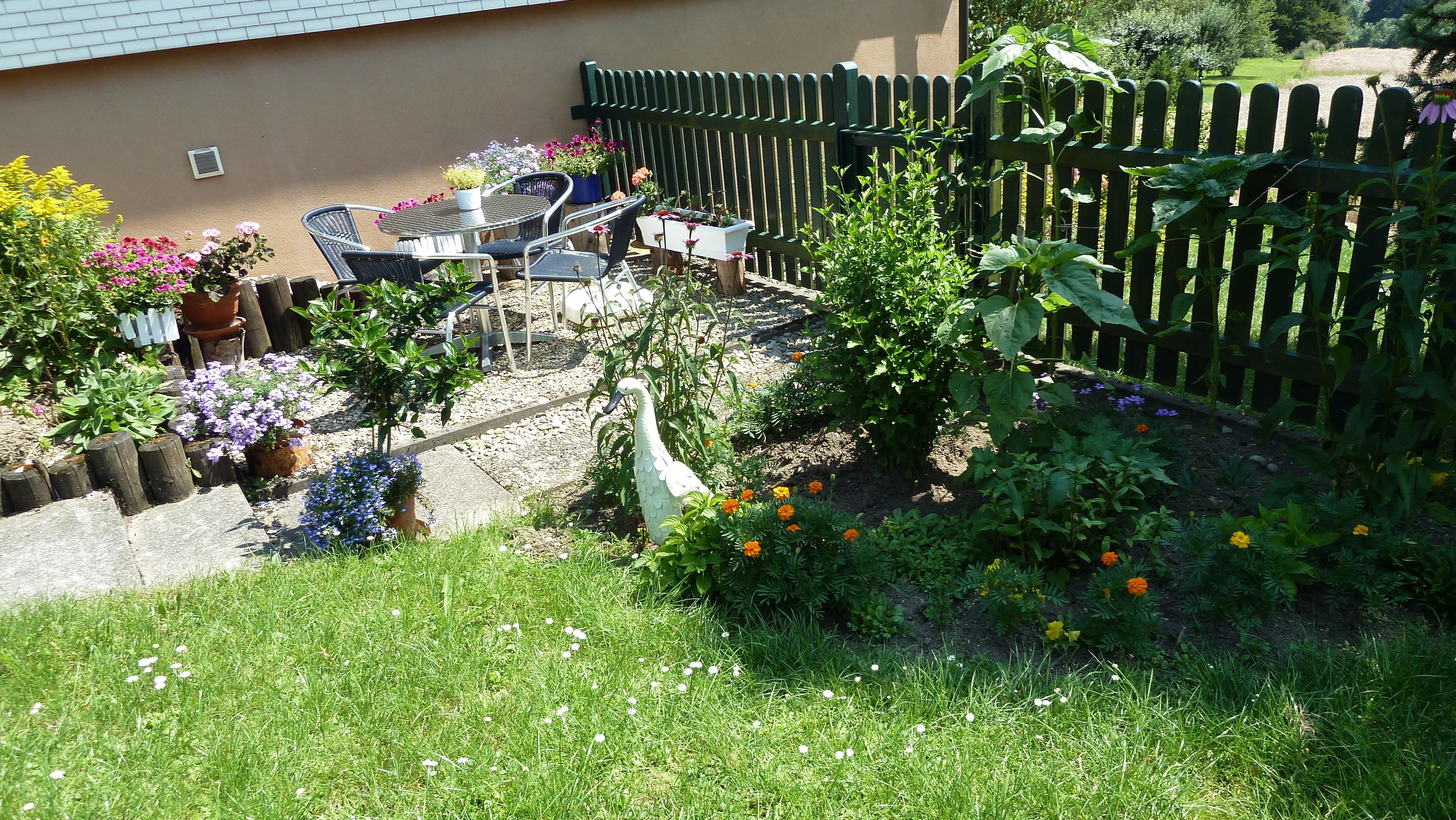 Geniessen Sie auf der überdachten Terrasse Ihr Frühstück mit Vogelgezwitscher, inmitten einer Streuobstwiese, bei