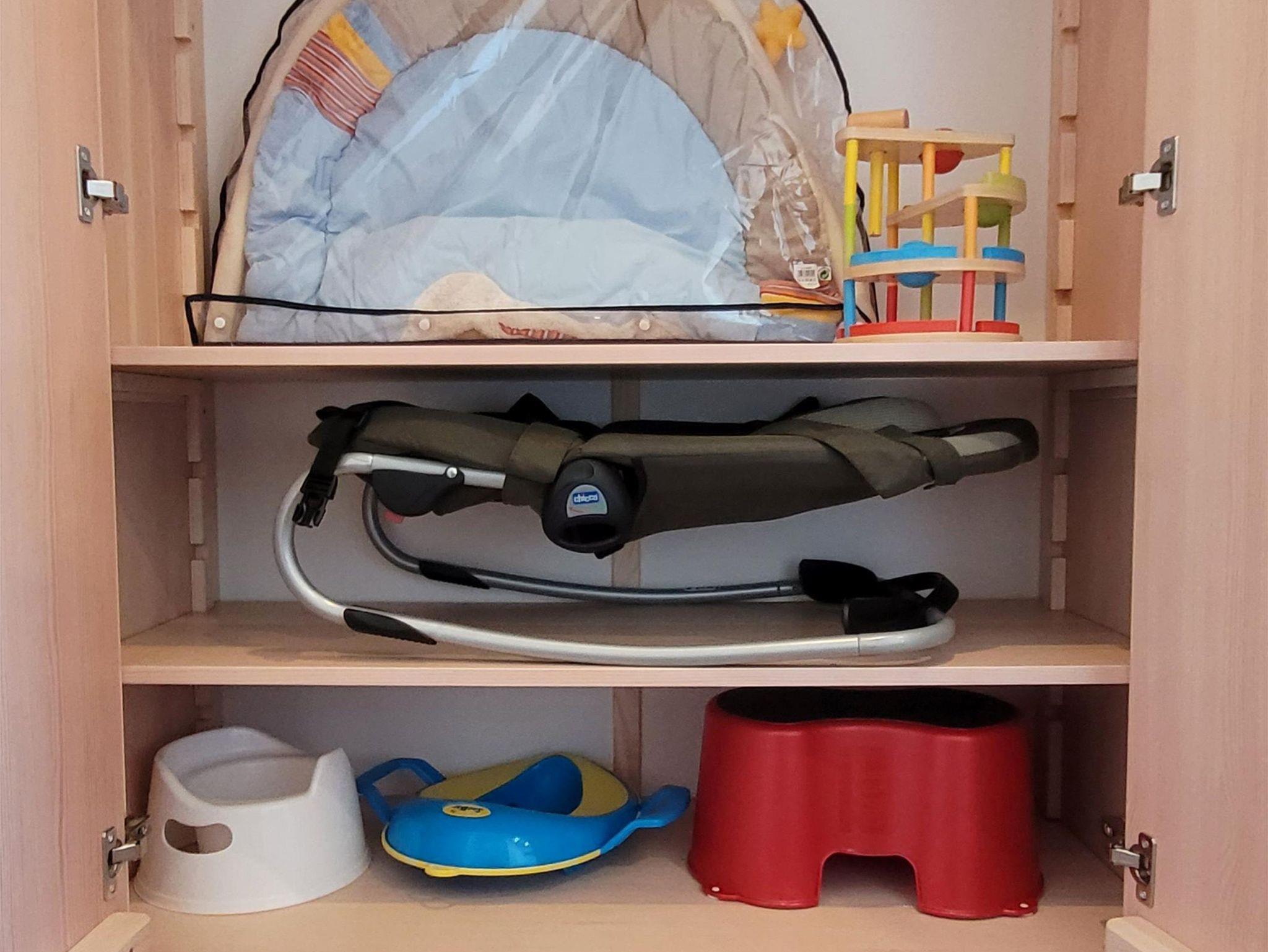 Das Kinderzimmer ist komplett ausgestattet mit einem Kinderbett (160x70cm - bis ca. 7 Jahre), einem Babybett (140x70cm) und zwei weiteren zustellbaren Babyreisebetten (120x60cm) sowie Wickelkommode, welche mit einer Grundausstattung gefüllt ist. Babydecke mit Spielbogen, Babywippe, Hocker, Spielsachen, Bücher sind ausreichend und für verschiedene Alterstufen vorhanden.