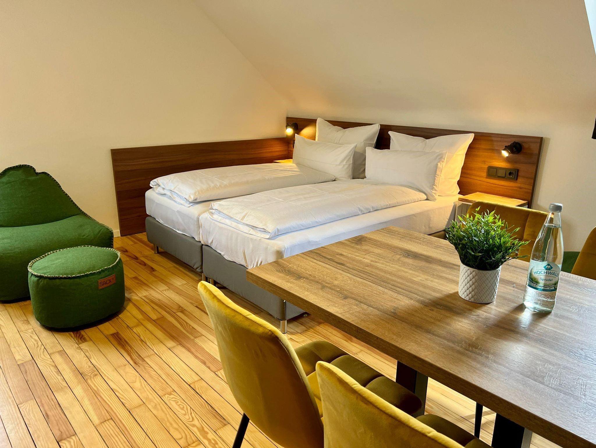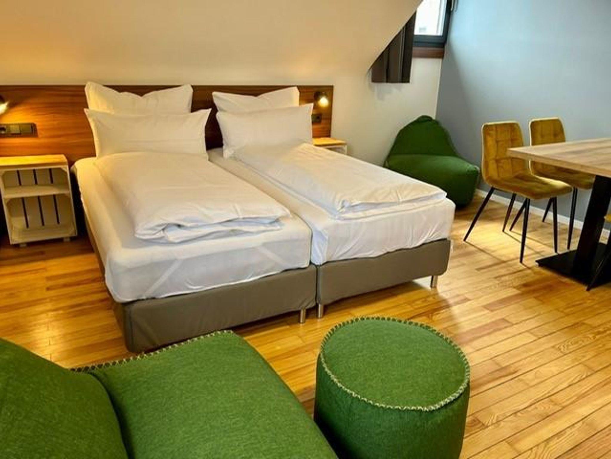 Unsere 60qm großen Superior Apartments eignen sich wunderbar für Familien mit 2 Kindern. Die Apartments verfügen über ein Schlafzimmer mit hochwertigen Boxspringbetten und zwei weiteren Betten im Wohnbereich. In den Wohn-, Essbereich ist eine vollausgestattete Küche integriert. Entspannung auf einem der Sitzsäcke kommt ebenfalls nicht zu kurz. Ein Frühstück ist im Preis noch nicht enthalten, kann aber für nur 15 Euro/Person gerne hinzugebucht werden.