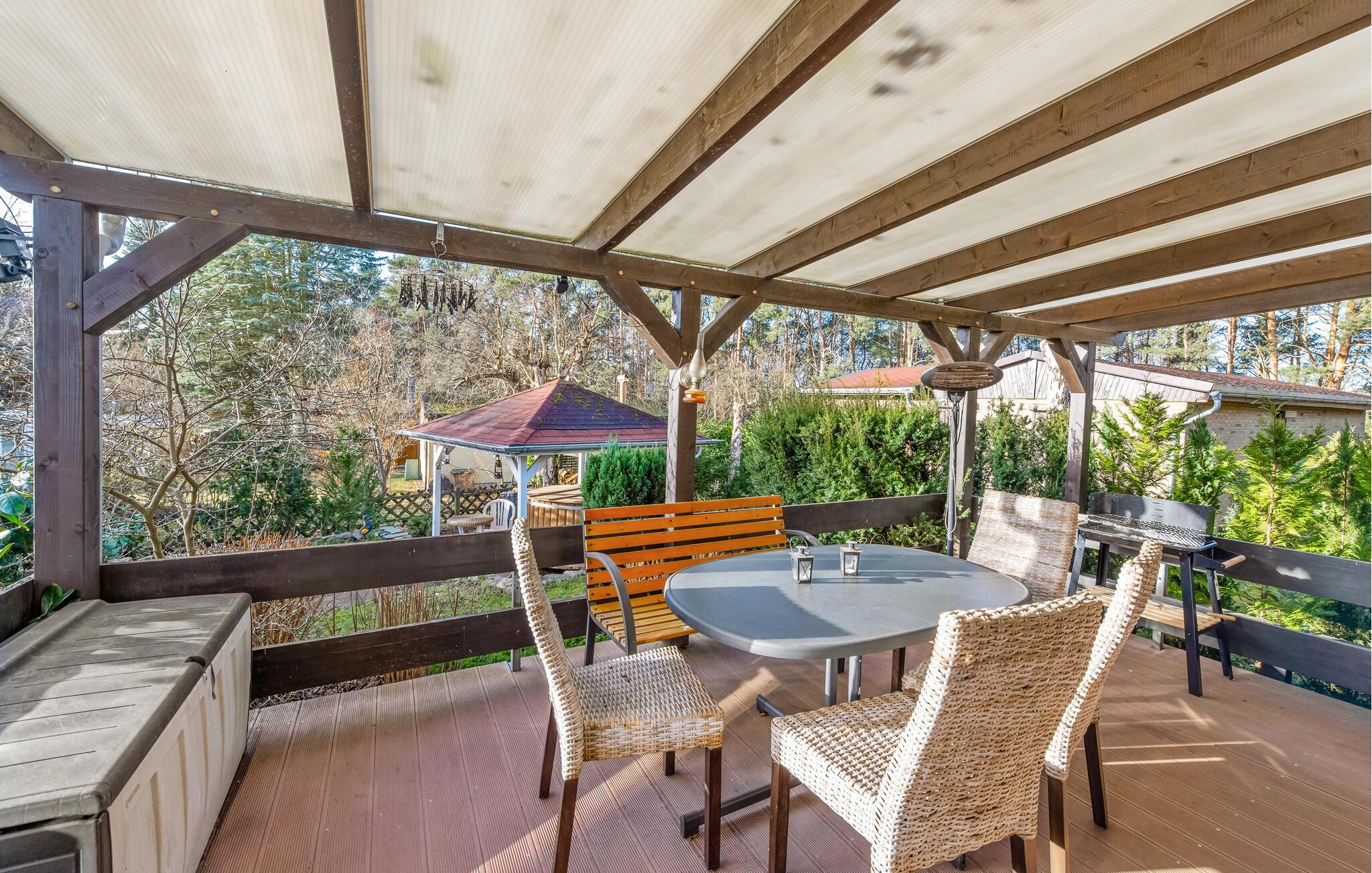 Nyt solen på terrassen, la blikket vandre over hagen og tilbring milde sommerkvelder utendørs med deilig mat fra grillen. Ta en dukkert i det finske trebadet og nyt den velgjørende avslappingen.