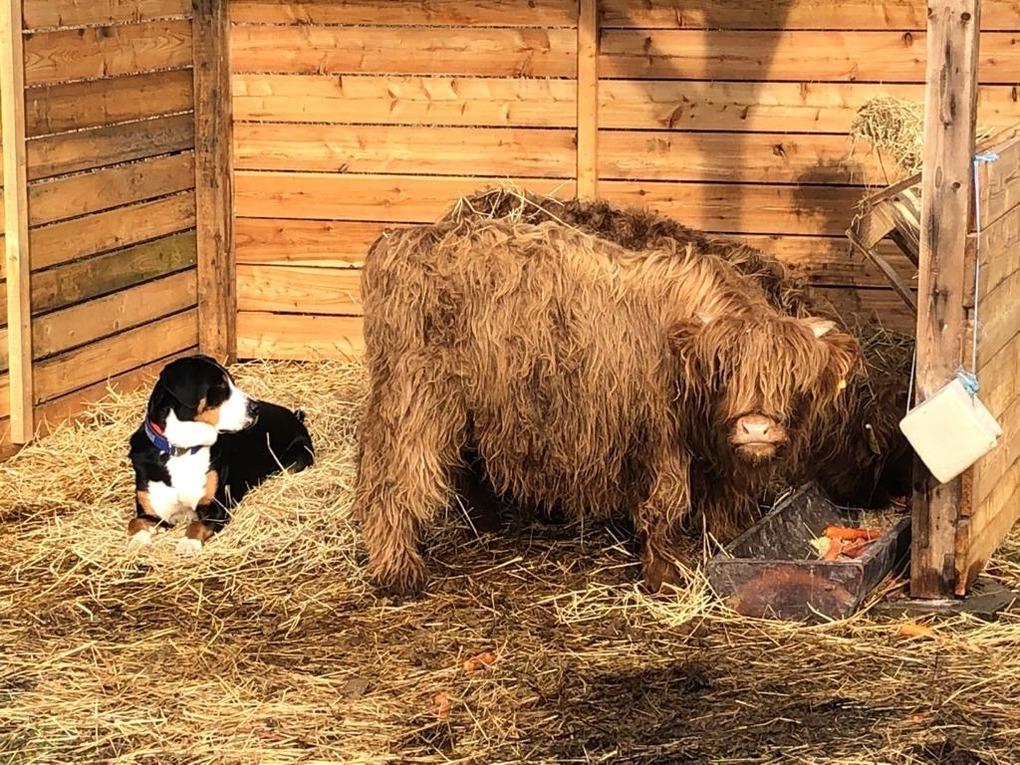 Das ca. 1200 m² große grüne Grundstück ist komplett eingezäunt. Ihren PKW können Sie direkt vor dem Haus parken. Ihr Haustier ist herzlich willkommen (maximal 1 liebes Tier, da Sie ein paar ruhige Rinder und Schafe als Nachbarn haben).