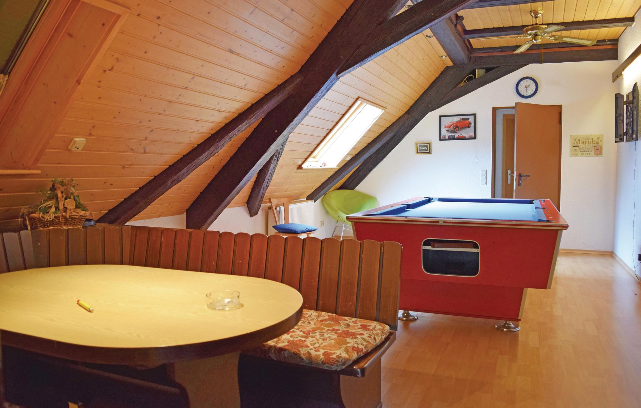 Dette feriehuset ligger i den lille landsbyen Welschensteinach, ved foten av det 727 m høye Geisberg-fjellet i Schuttertal-dalen. Feriehuset ditt tilbyr mange ekstrautstyr og er spesielt godt egnet for en ferie med barn. Det er geiter å klappe og mate, et felles utendørsbasseng med sklie, og i huset kan du bruke badstuen og boblebadet. Boblebadet kan bare brukes fra november til slutten av mai. Du okkuperer første etasje i huset her. Feriehuset er enkelt, men utstyrt med alt du trenger på ferie. På loftet er det et lekerom med biljard og dart. På bare en time med bil er du i Strasbourg i Alsace. Denne vakre byen, med mange typiske bindingsverkshus, er vel verdt et besøk. Omtrent 35 kilometer øst for Rust finner du Europapark, en av de største fornøyelsesparkene i Tyskland, som tar deg gjennom 11 europeiske land. Her er du garantert en variert ferie med hele familien. Felles basseng, bordtennis, dart og lekeplass.
