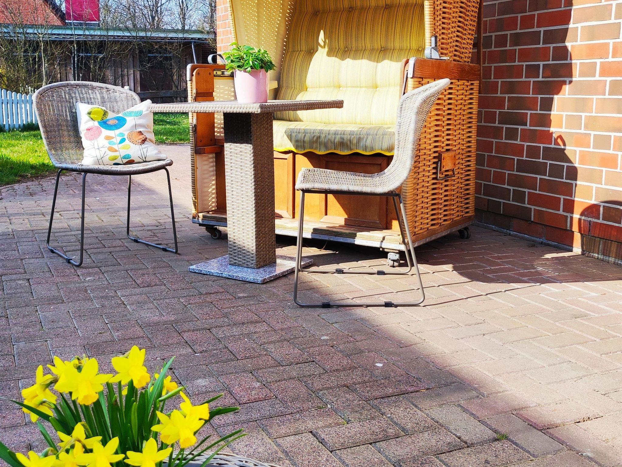 Die „Lieblingsstube“ liegt in ruhiger Dorflage in der Gemeinde Welt auf der Nordseehalbinsel Eiderstedt zwischen dem Nordseebadhotspot St. Peter Ording, der romantischen Hafenstadt Tönning und der Kleinstadt Garding. Die im Erdgeschoß gelegene Ferienwohnung ist eine von vier Wohneinheiten.