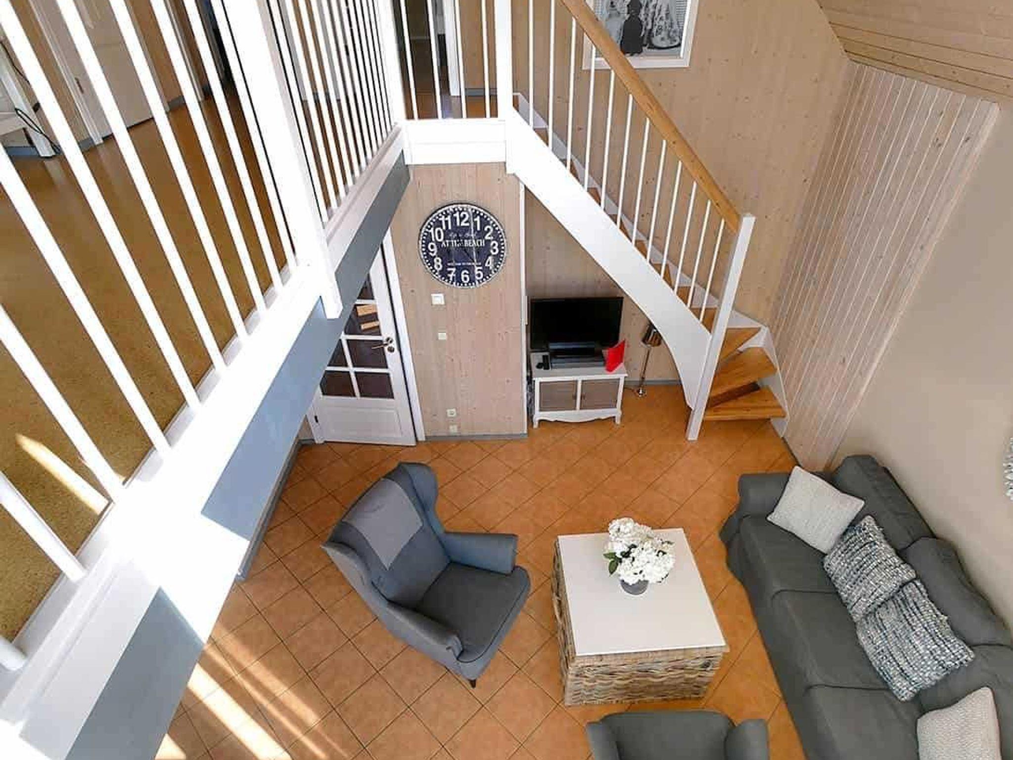 Auf einer Halbinsel im Hafen liegen diese Doppelhaus-Typen mit 98 m² Wohnfläche für 6+2 Personen auf zwei Ebenen. Durch eine offene Galerie mit Schlafsofa können hier 8 Personen übernachten.Die Terrasse führt direkt auf das Gartengrundstück und von der Galerie aus haben Sie einen direkten Zugang zum Balkon.Unsere Fotos zeigen Beispiele individuell unterschiedlicher Einrichtungen
