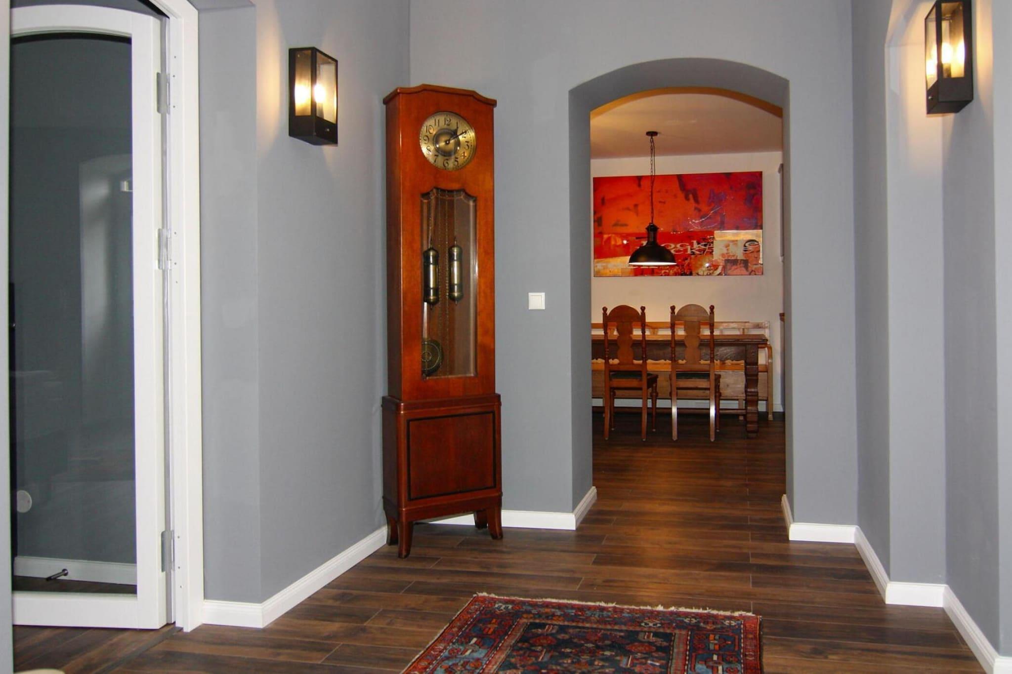 Eksklusivt feriehus med WiFi for opptil 8 personer i slak skråning på eiendommen til Schlosshotel Wendorf nær Schwerin. Med 289 kvadratmeter boareal og ekstremt komfortabel og stilig innredning er huset en sann oase av velvære. Huset består av 3 uavhengige enheter, hver med separate innganger. Du kan dra nytte av alle fasilitetene til slottshotellet, som ligger kun 100 meter unna. Nyt for eksempel dyrebare timer i velvære- og skjønnhetsområdet, la deg skjemme deg bort i restauranten med topp gastronomi eller forbedre ditt handikap på den nærliggende golfbanen. Det er også en profesjonell ridestall ved foten av slottsparken. Det femstjerners slottshotellet Wendorf ligger bare noen få kilometer unna Schwerin. Omgitt av det sjarmerende landskapet i Mecklenburg Lake District, har du muligheten til å oppdage kunst og kultur i hovedstaden og aktivt utforske det vakre naturlandskapet. Detaljer: Forbruksbaserte energikostnader, sengetøy, håndklær, sluttrengjøring, rabatt på WiFi-greenfee Aktiviteter i nærheten: WINSTONgolf golfbanen, kun 10 minutter unna med bil, er en av de mest attraktive golfbanene i Europa. Som gjest på Schlosshotel får du reduserte greenfee for totalt tre plasser i anlegget. Men omgivelsene rundt slottshotellet byr også på mange muligheter for friluftsliv. Regionen er laget for lange sykkelturer eller hyggelige fotturer. Utflukter til Schwerin og Rostock eller en dag på stranden ved Østersjøen er veldig enkle å gjøre herfra Ikke egnet for bevegelseshemmede