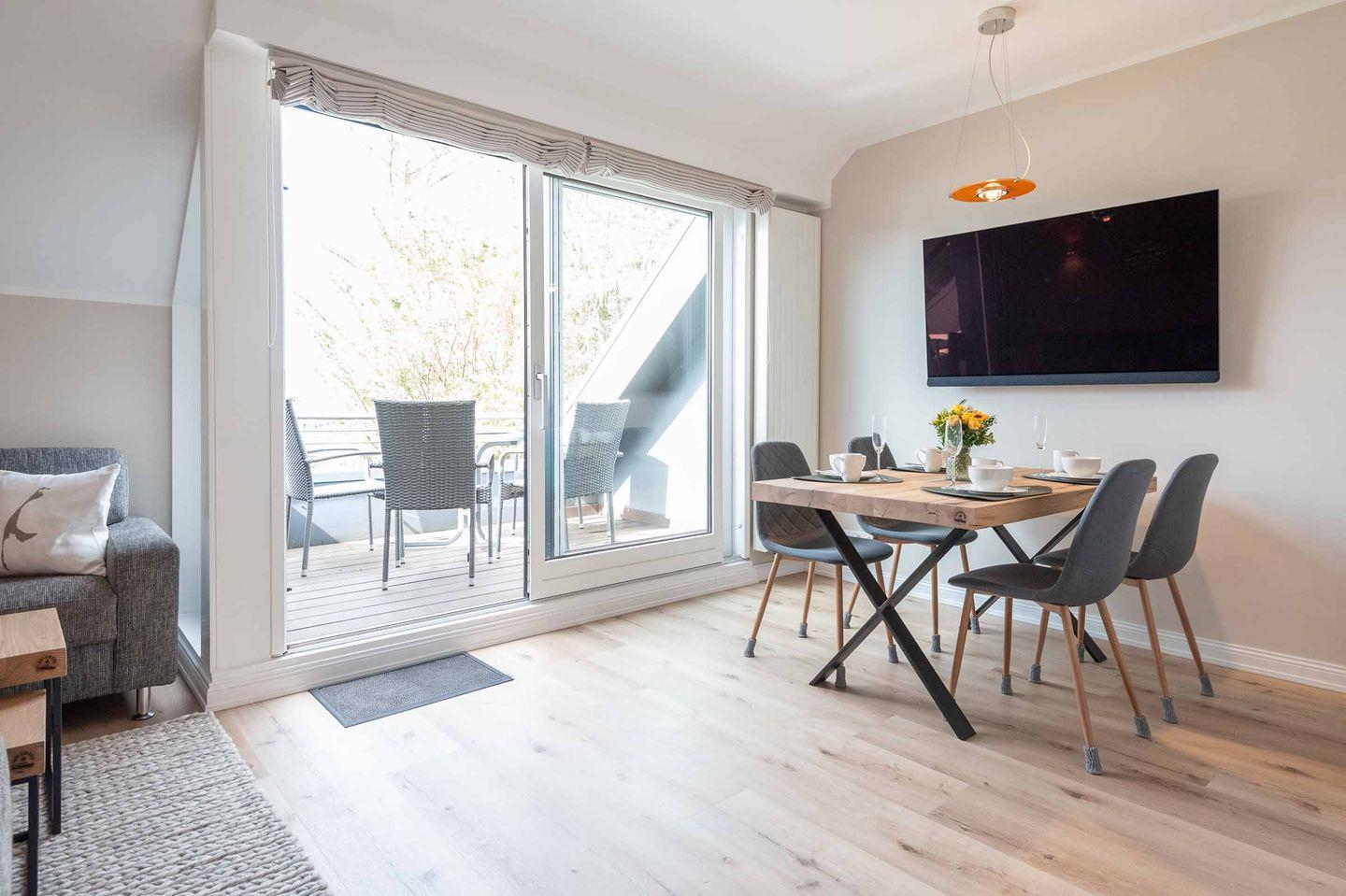 Dieses lichtdurchflutete Domizil im modernen Wohnstil wurde im Frühjahr 2024 renoviert und teils mit neuen Möbeln ausgestattet. Die großzügige Ferienwohnung im Obergeschoss befindet sich auf zwei Ebenen im beliebten Ferienhaus "Käpt'n Nelson", das durch seine ruhige Wohnlage besticht.