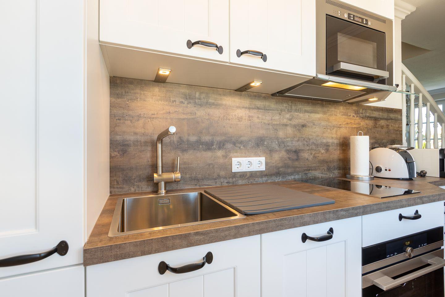 OG: Heller und ansprechender Wohnraum mit Smart-TV (Kabel), DVD-Player, Telefon sowie einer Bluetooth fähigen Soundanlage. Integrierte Küche mit Geschirrspüler, Microwelle, Toaster, Kaffeemaschine, Wasserkocher und Backofen. Dusche/WC, Föhn. Balkon.