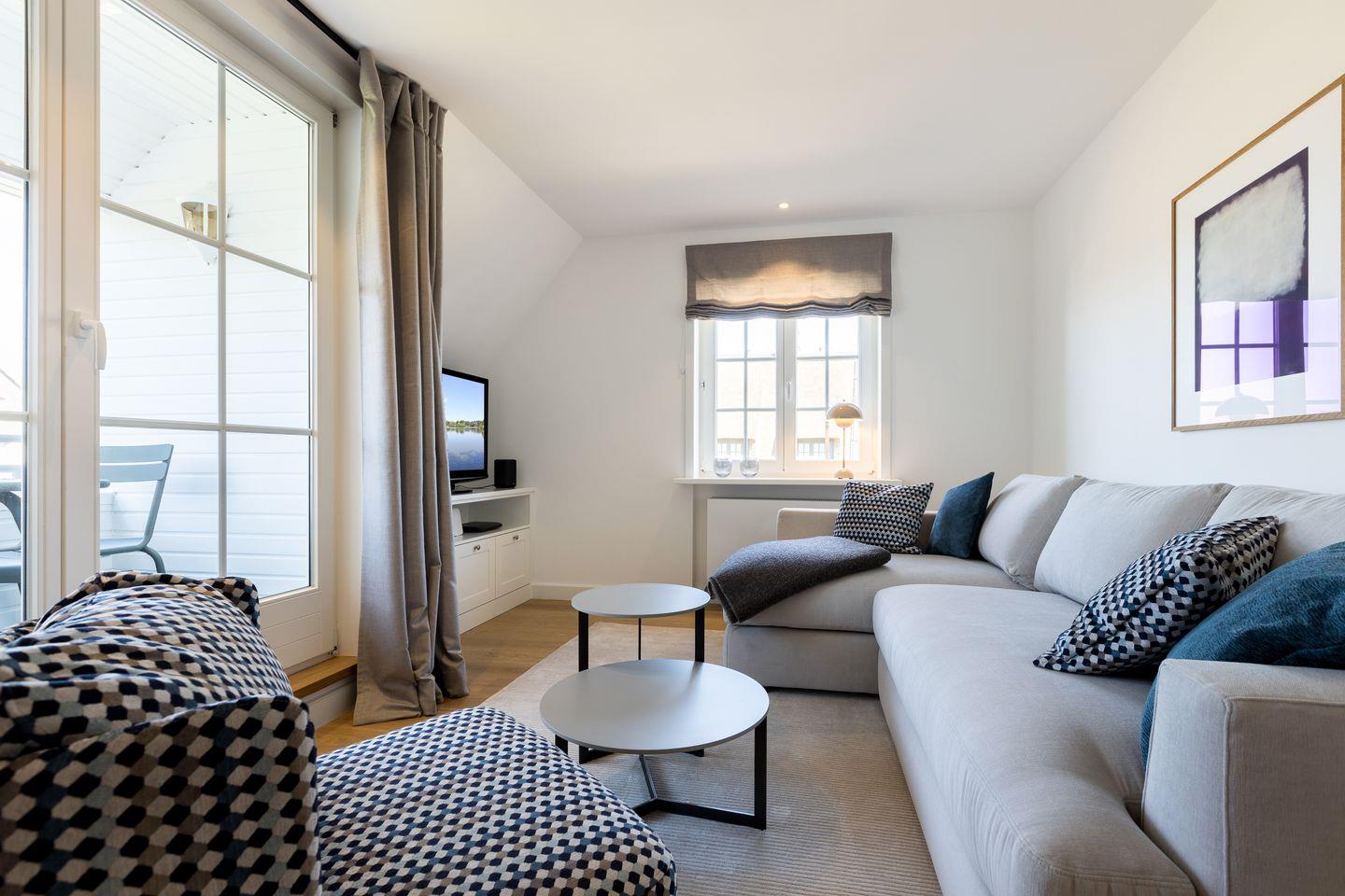 Das lichtdurchflutete und sehr großzügige Appartement bietet Ihnen einen schönen Wohnkomfort für Ihren relaxten Urlaub. Der zum Westen ausgerichtete Balkon mit Fermob Balkonmöbel laden zum Open-Air-Verweilen ein.
