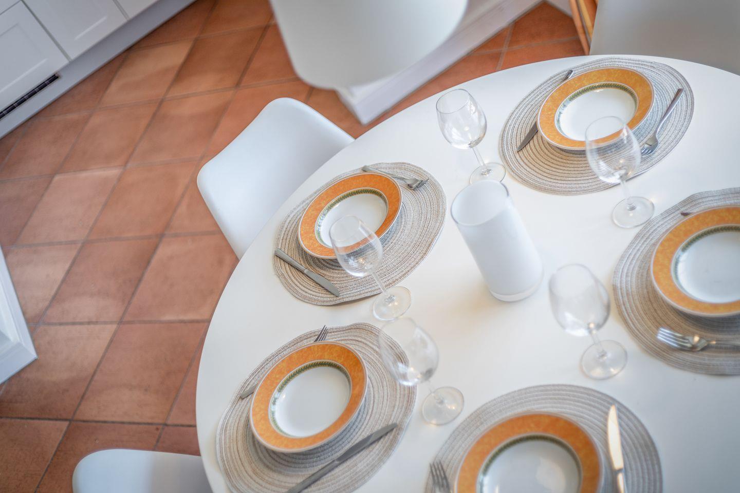 Erdgeschoss: Sehr geschmackvoll und farblich gekonnt aufeinander abgestimmte Möblierungen, Farben und Stoffe. Loewe Individual 46 Zoll Flatscreen-TV und externer Lautsprecher mit eingebautem Digitalrecorder, Hifi-Anlage und Telefon. DSL-Anschluss inkl. kostenloser und kabelloser Internetnutzung per W-Lan. Luxuriöse integrierte Küche mit Geschirrspüler und Backofen. Design-Gäste-WC. Sonnige West-Terrasse mit Rattan-Gartenmöbeln, Strandkorb (ca. von April-Oktober) und individuell regelbarem Heizstrahler.