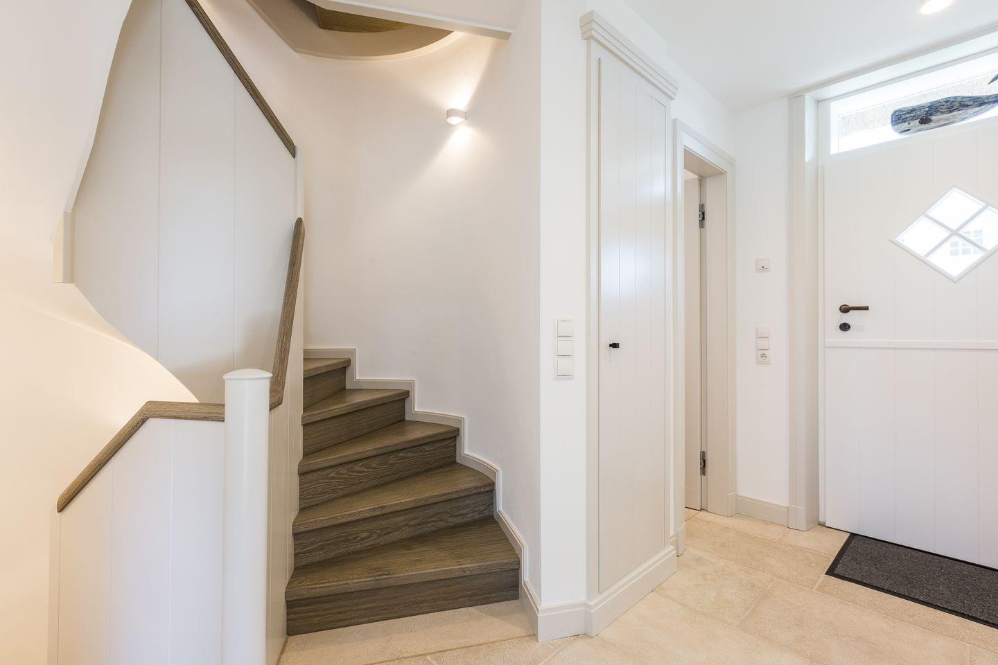 Das Haus bietet Ihnen auf 123 m² Nutzfläche alles was das Urlaubsherz begehrt. Im Erdgeschoss erwartet Sie ein großzügig gestalteter Wohn- und Essbereich, der stilvoll mit nordischen Accessoires eingerichtet ist. In der separaten Küche können Sie sich dank der tollen Ausstattung ein wunderbares Urlaubs-Dinner kochen und dieses auf einer der großzügigen Terrassen genießen. Diese ist von April bis Oktober mit einem Strandkorb und mehreren Sitz- und Liegemöglichkeiten ausgestattet. Im Erdgeschoss befindet sich außerdem ein Gäste-WC.