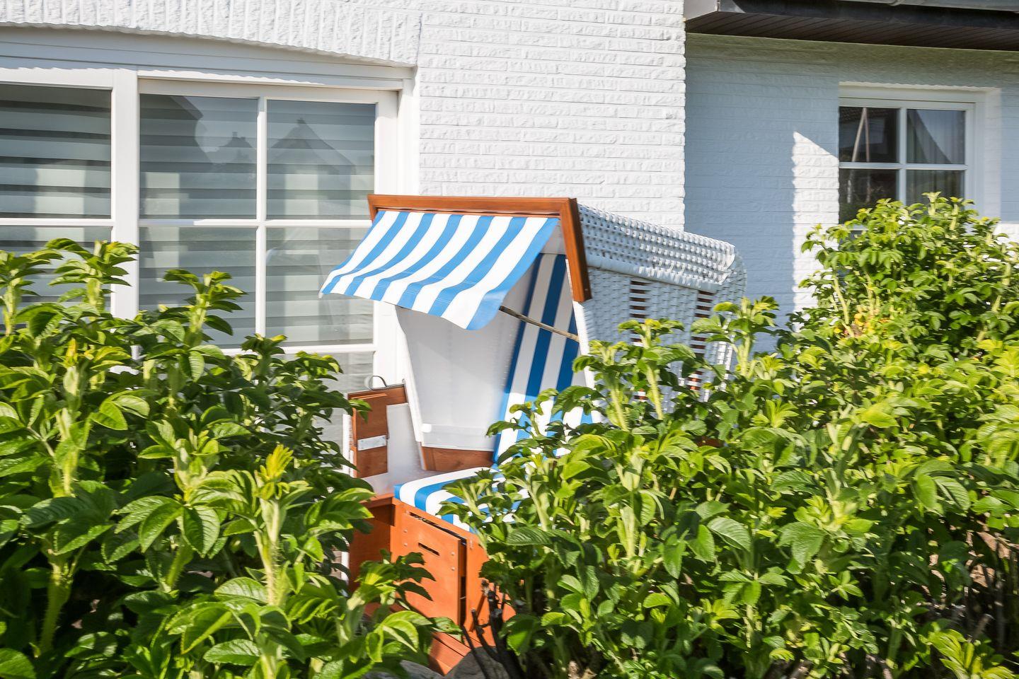 Terrasse mit Gartenmöbeln und strandkorb (ca. April - Oktober)