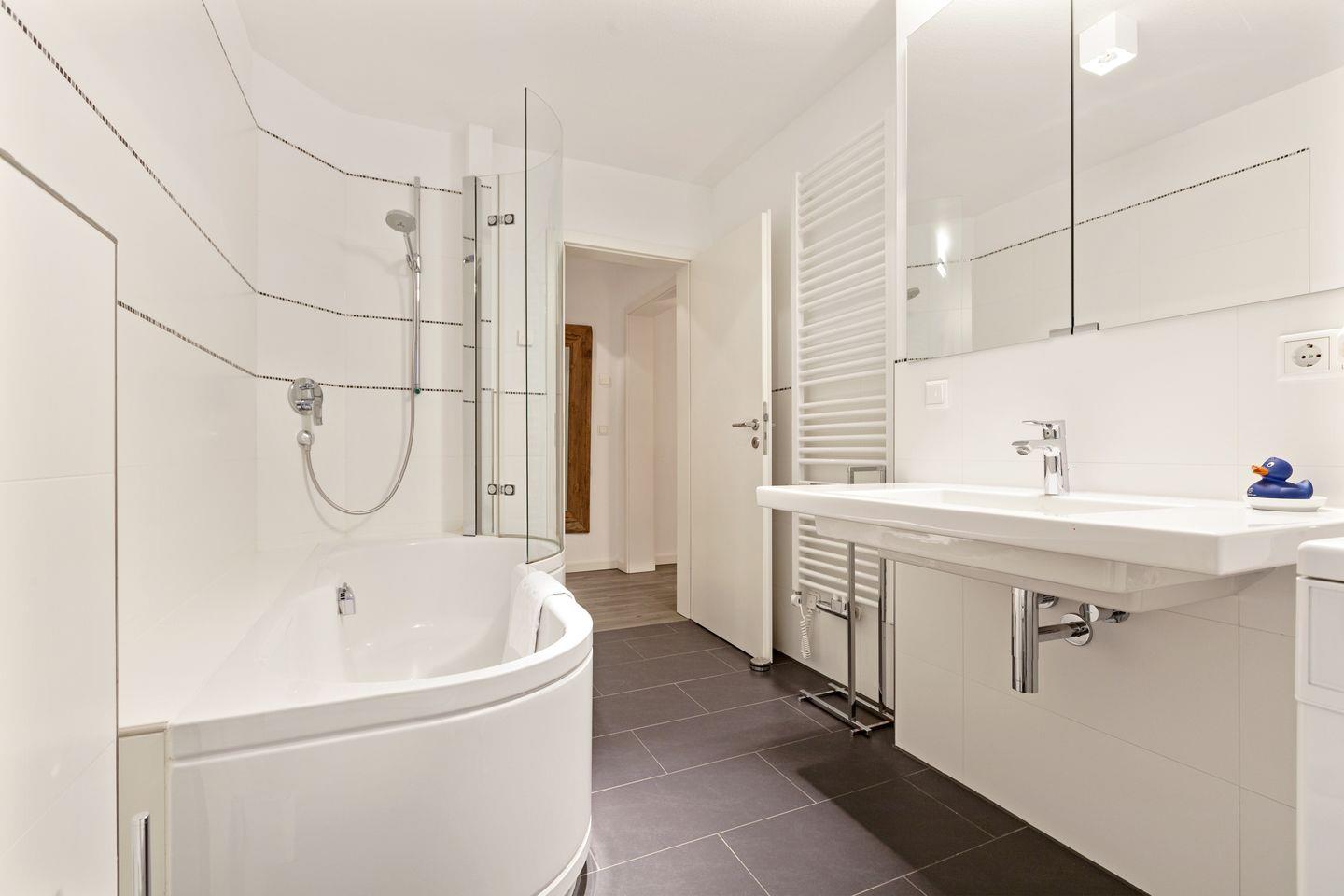 EG: Freuen Sie sich auf Ihren luftigen und sehr geschmackvoll möblierten Wohnbereich. Die edlen Eichendielen schaffen eine fantastische Wohnatmosphäre. Die Möblierung ist äußerst geschmackvoll, kein Detail ist zu viel, aber auch keines zu wenig. Die Formensprache des Designs Ihres Logis ist klar, aber dennoch versprüht alles sehr viel Charme, Wäreme und lädt zum Kuscheln ein.