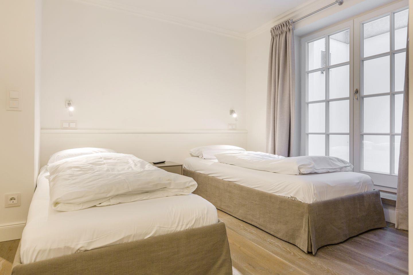 Hier empfangen Sie ebenfalls zwei sehr geschmackvoll designte Räumlichkeiten, wobei ein Raum Ihnen ein Doppelbett mit En-Suite Bad offeriert, während der andere Raum zwei Einzelbetten mit separatem Bad vorhält. Maßangefertigte Tischlereinbauten sowie jeweils TV-Geräte verstehen sich von selbst. Last but not least steht Ihnen hier ebenfalls noch ein Hauswirtschaftsraum mit Waschmaschine und Trockner zur Verfügung.
