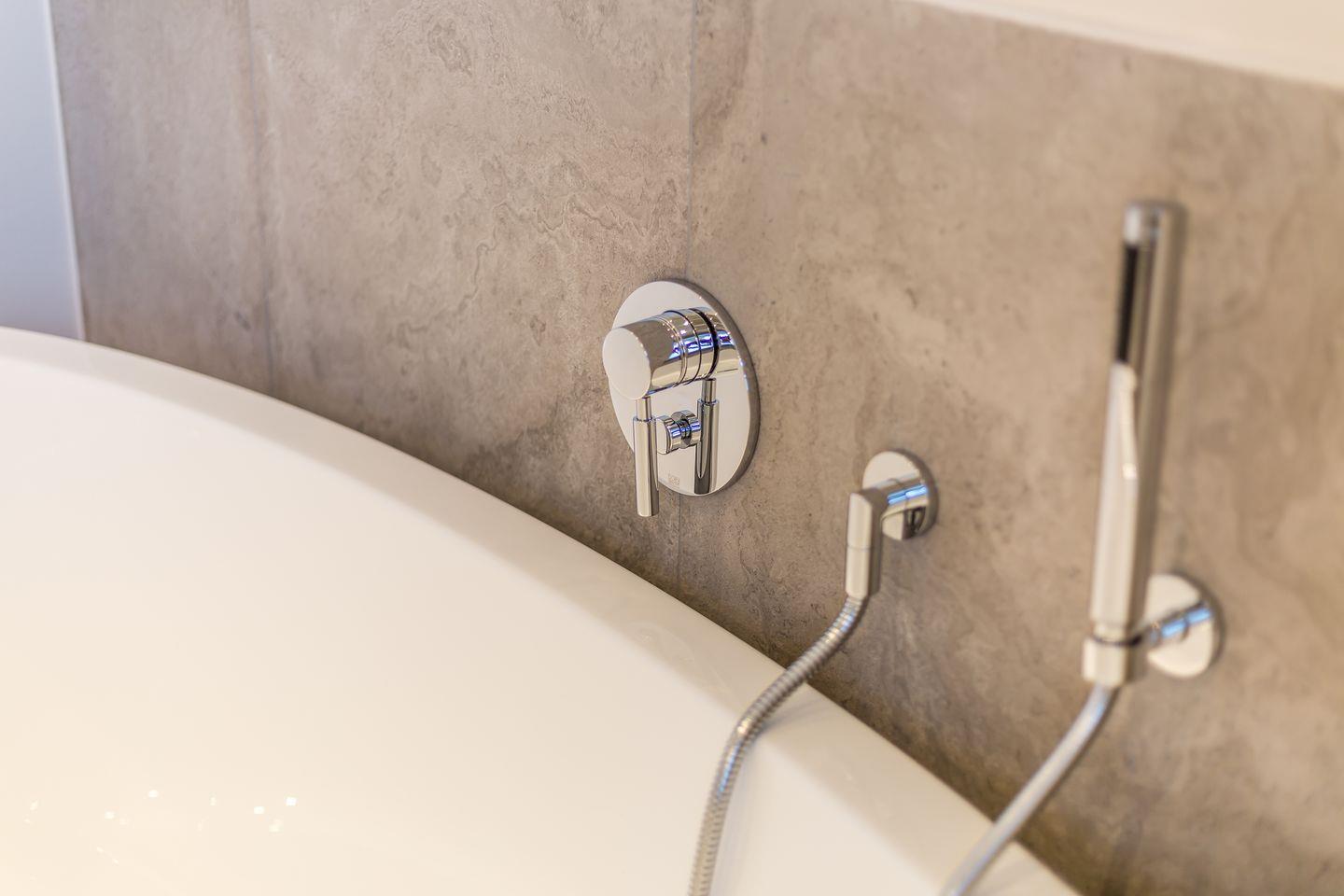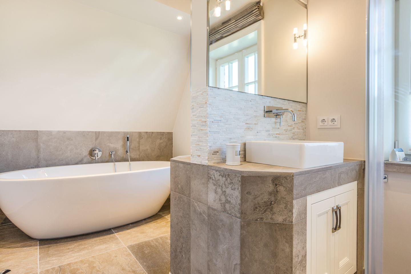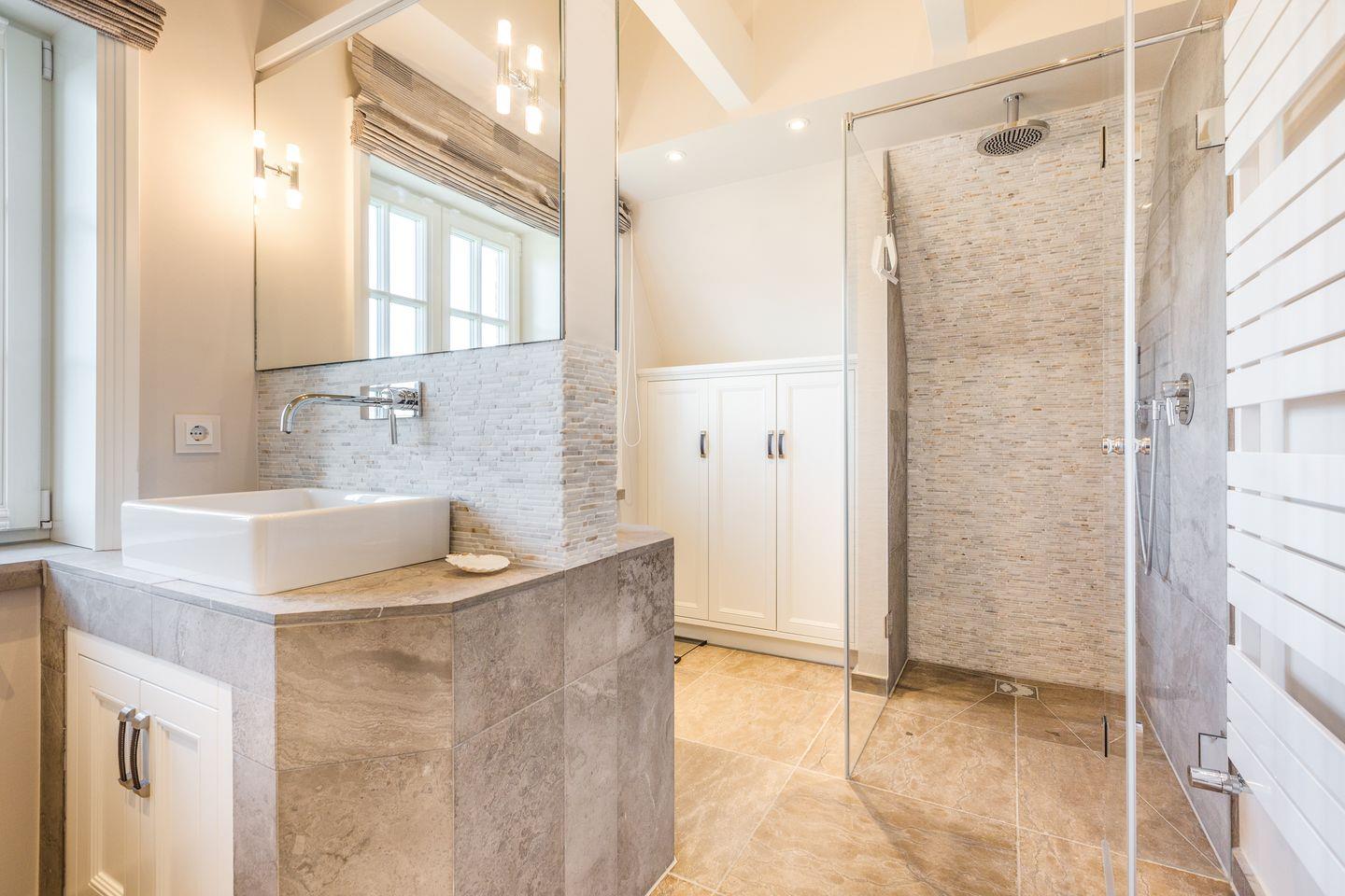 Apropos Start in den Tag: viel besser als in Ihrem Masterbedroom-Bad kann dieser nicht ausfallen: dafür garantieren eine XXL-Dusche, feinste Natursteine, hochwertigste Armaturen, zwei geschickt angeordnete Waschtische sowie eine große, freistehende Oval-Design-Badewanne. Ganz ehrlich: solch ein schönes Bad möchte man eigentlich gar nicht mehr verlassen, bzw. am liebsten in den Koffer einpacken und nach Hause mitnehmen ...