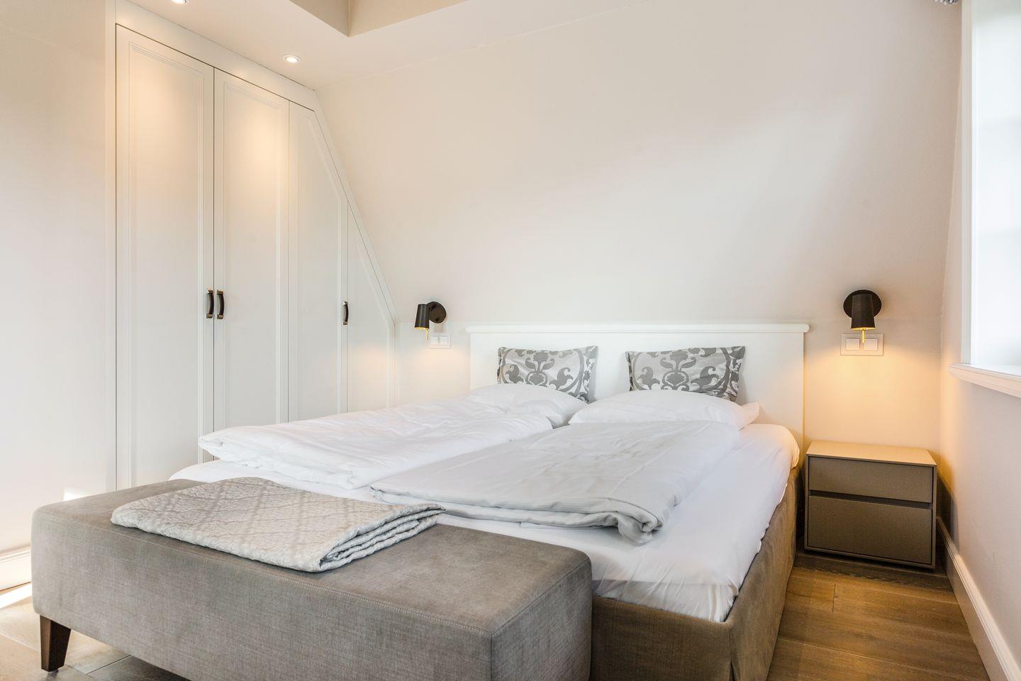 Freuen Sie sich auf Ihren fantastischen, eichengedielten Masterbedroom, inklusive kleinem Meerblick ! Großzügig, edel - traumhafter kann man sich nur schwer betten und syltbeseelt einschlafen, das Meeresrauschen bei geöffnetem Fenster inklusive. Der Spitzboden wurde hier nicht ausgebaut, so dass Ihr Blick vorbei an massiven Deckenbalken in luftige Höhe schweift und dem Raum sehr viel "Luft" und Leichtigkeit verleiht. Wer nicht dem Meer lauschen möchte, kann natürlich auch TV vor dem Schlafengehen oder zum Start in den Tag schauen.