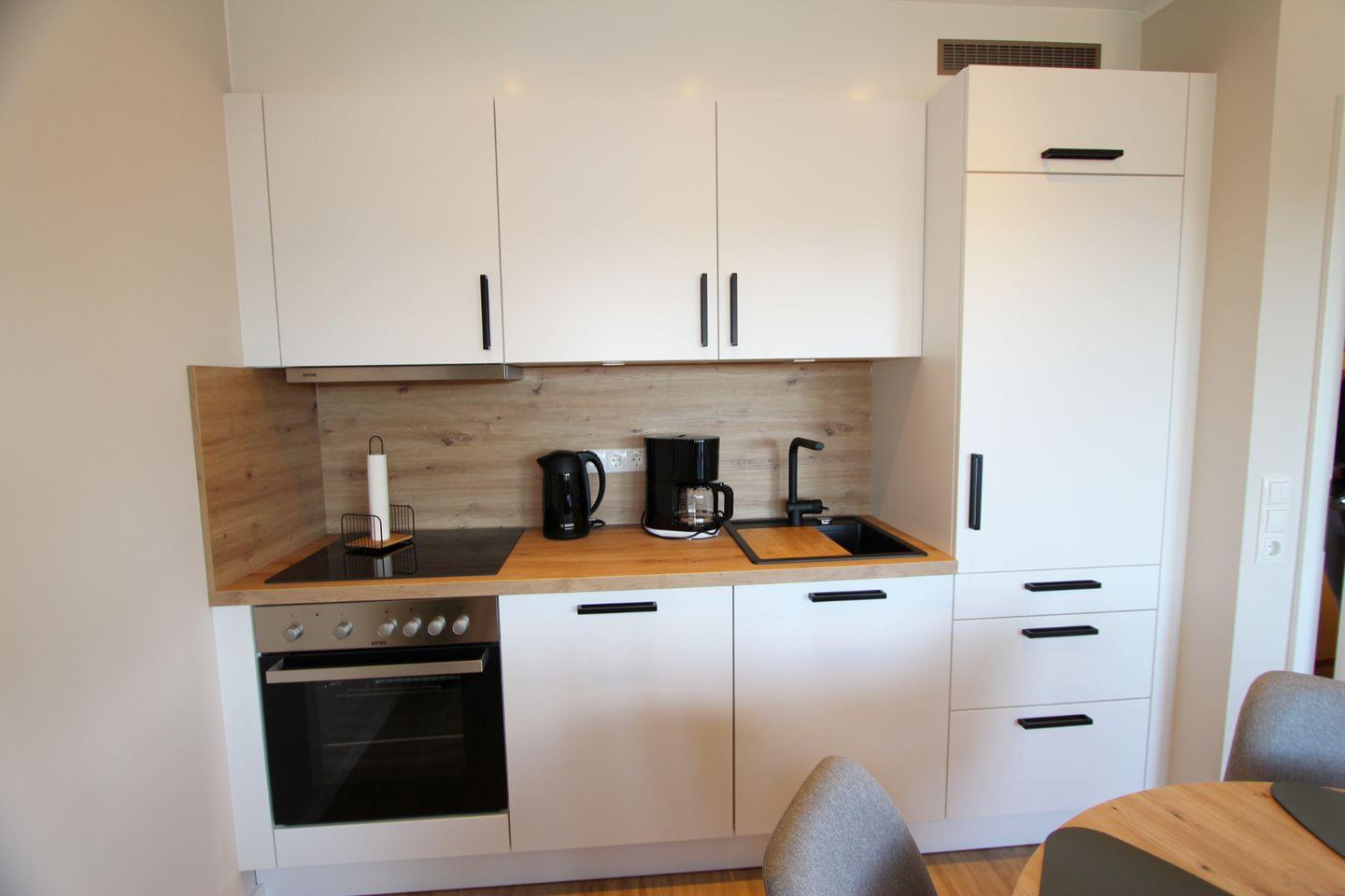 In der neuen hochwertigen Küchenzeile können Sie Ihre Lieblingsspeise zubereiten und am separaten Esstisch genießen.