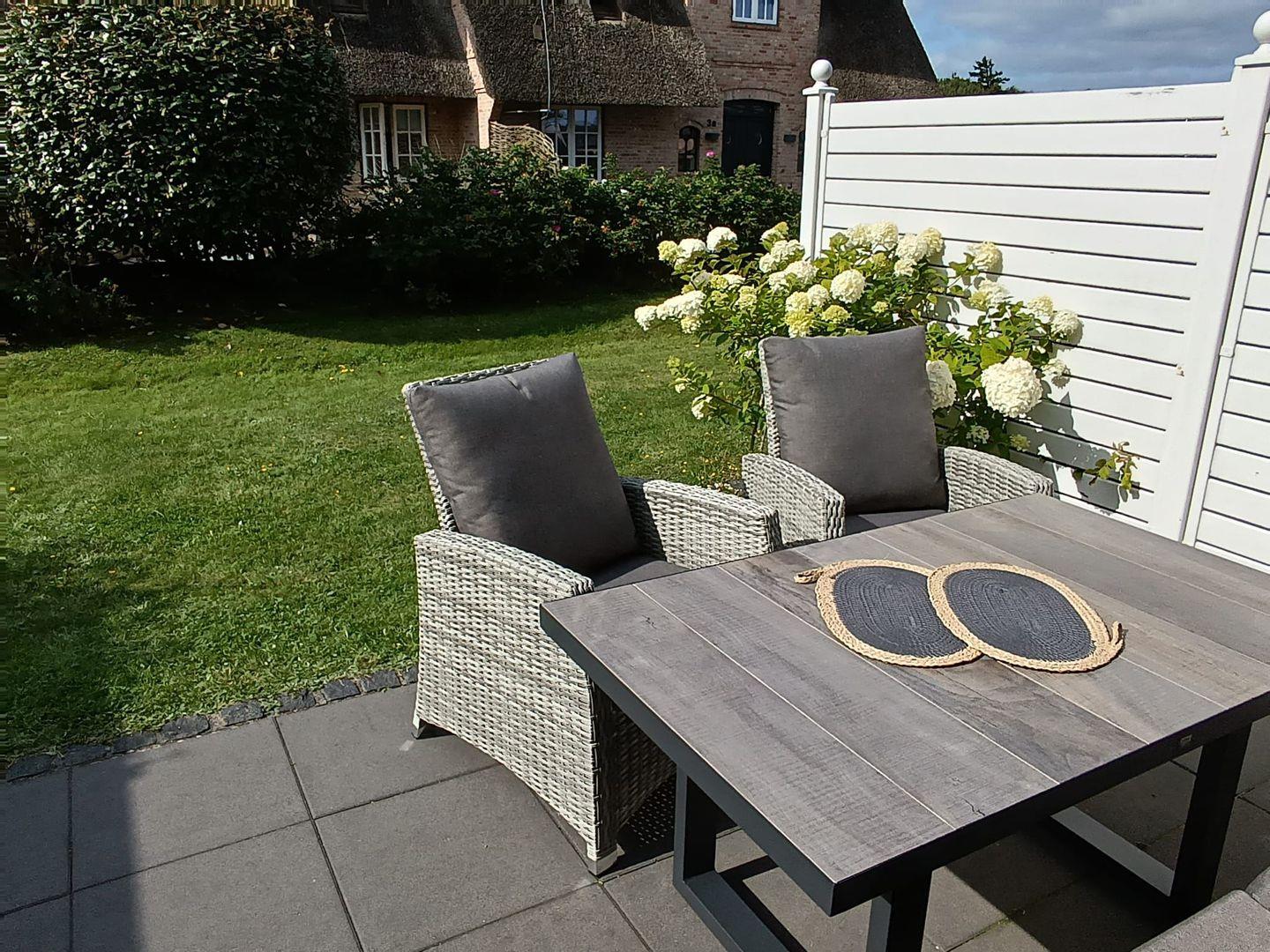 Im „Inselglück“ erwartet euch eine großzügige, sonnige Südterrasse, auf der ihr euch rundum wohlfühlen könnt. Ein gemütlicher Sylter Strandkorb, komfortable Gartenmöbel sowie eine elektrische Markise laden zum Verweilen ein. An warmen Sommerabenden steht euch ein hochwertiger Weber-Elektrogrill für gemeinsame Grillabende zur Verfügung. Die gepflegte Grünfläche sorgt für zusätzlichen Freiraum und garantiert Entspannung pur.