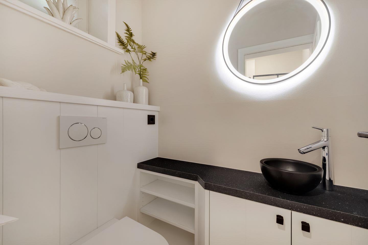 Das Badezimmer der Unterkunft ist modern eingerichtet und verfügt über eine bodengleiche Dusche, ein Waschbecken, ein WC sowie einen Haartrockner. Weiterhin steht Ihnen ein Gäste-WC zur Verfügung.