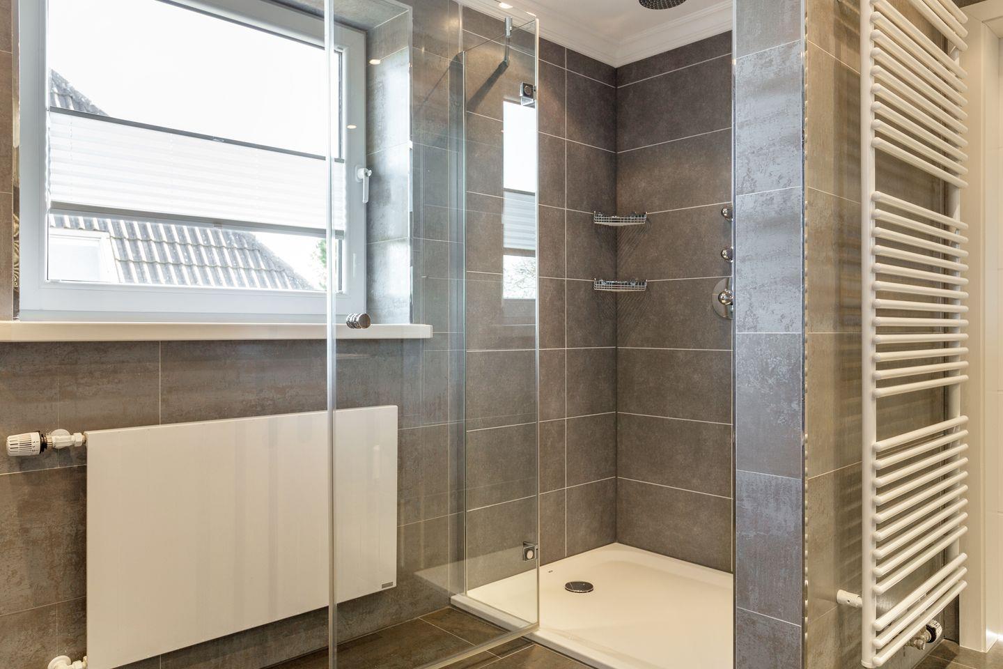 Im Obergeschoss setzen sich Raum und Komfort konsequent fort. Zwei großzügige Schlafzimmer mit Doppelbetten bieten viel Platz und Ruhe. Eines davon verfügt über ein eigenes Tageslichtbad mit Badewanne und Regendusche. Ein weiteres modernes Bad mit Dusche ist vom Flur aus erreichbar. Zusätzlich befindet sich auf dieser Ebene ein weiteres Schlafzimmer mit französischem Bett.
