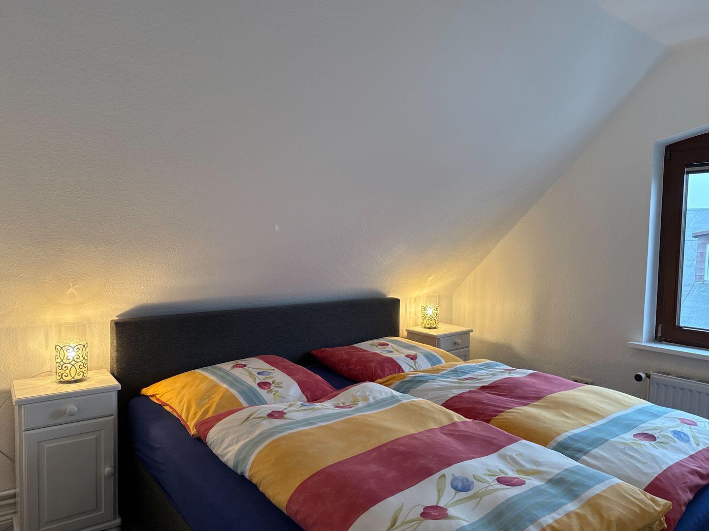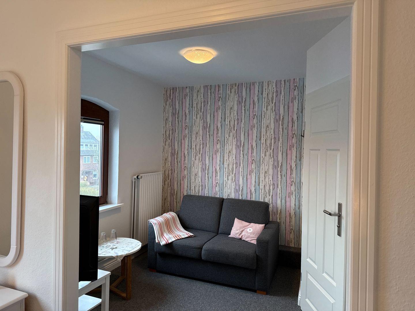 Dieses Doppelzimmer der Pension La Mer bietet auf 23 m² Platz für zwei Personen. Ausgestattet mit Doppelbett, separatem Wohnzimmer mit Sofa, TV, WLAN und eigenem Duschbad/WC. Bettwäsche, Handtücher und Reinigung sind inklusive. Auf dem Gemeinschaftsflur stehen Kühlschrank, Geschirr und Wasserkocher bereit.