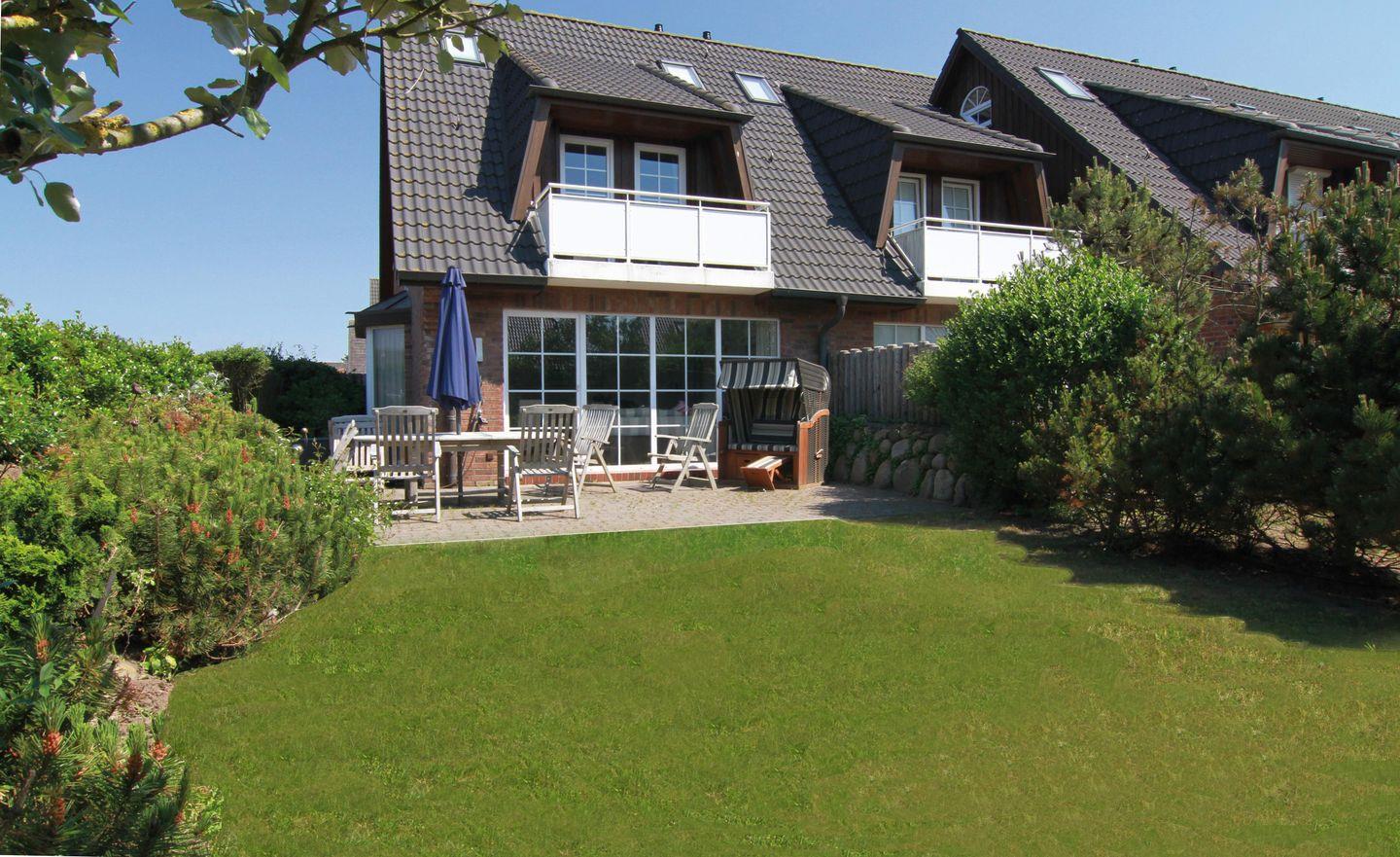 Vom Eingangsbereich mit Garderobe gelangen Sie in das lichtdurchflutete und großzügige Wohn- / Esszimmer mit zwei einladenden großen Sofas, Flatscreen, DVD-Player, Stereoanlage und Essecke. Von hier haben Sie Zutritt zur Süd-Terrasse mit Garten und Bestuhlung. Hier können Sie im vorhandenen Sylter Strandkorb bei einem Glas Wein den Sonnenuntergang genießen. Im Erdgeschoss liegen zudem das Duschbad mit WC, die separate, vollausgestattete Küche (Airfryer, Spülmaschine, Backofen, Ceranfeld, Kühlgefrierkombi, Nespresso-Maschine) und ein Hauswirtschaftsraum mit Waschmaschine & Trockner. Über die Treppe gelangen Sie ins 1. OG, wo Sie zwei Schlafzimmer mit je einem Doppelbett (180 x 200 cm) und Flatscreen vorfinden. Das Schlafzimmer Richtung Süden, verfügt zudem über einen herrlich sonnigen Balkon mit passenden Möbeln.