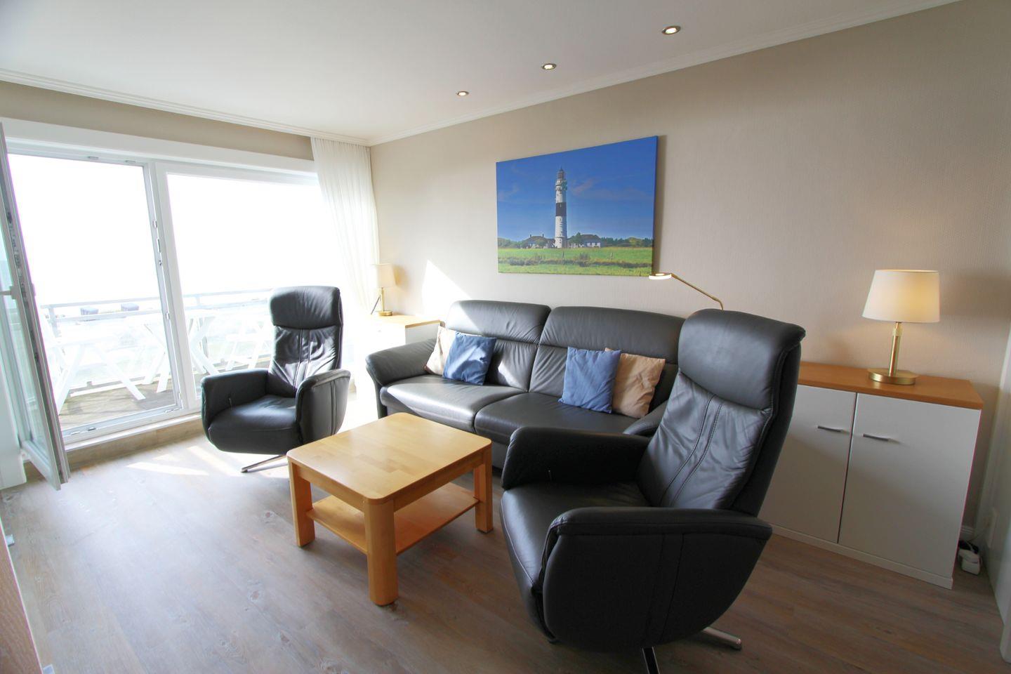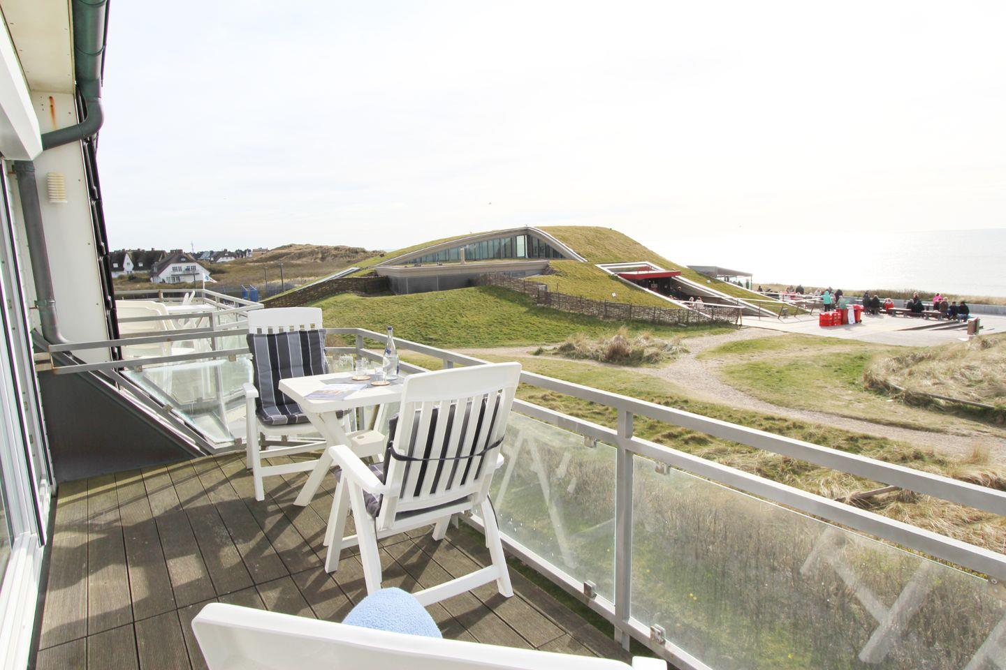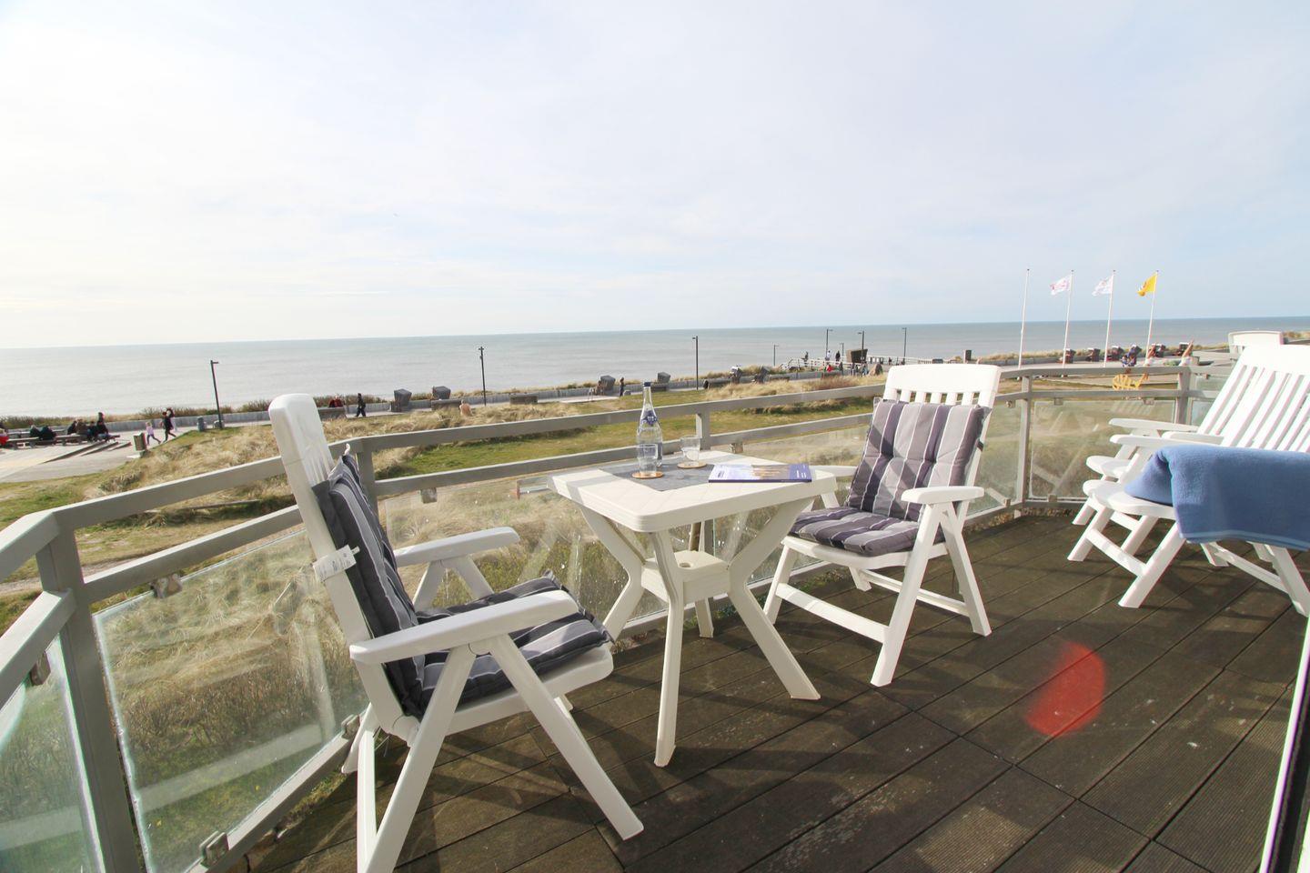 Genießen Sie auf dem West-Balkon den direkten Meerblick! Ob Sonne oder „Sylt-Wetter“, hier sind Sie dem Meer ganz nah.
