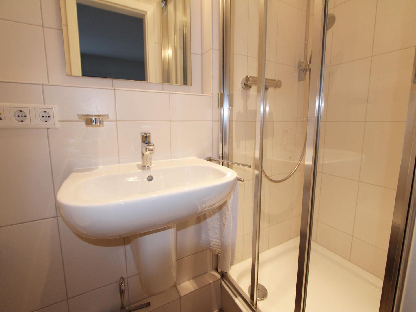 Zudem nutzen Sie in diesem Ferienappartement zwei Badezimmer. Die Bäder verteilen sich auf je eine Wohnebene, sodass Sie nahe den Schlafräumen auch Dusche und WC nutzen können. Im Keller des Hauses stehen Waschmaschine und Trockner als Münzgeräte zur Verfügung.