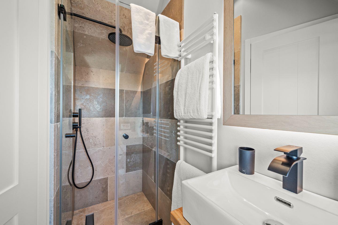 Die individuell vom Tischler gefertigte Designküche überzeugt durch Funktionalität und hochwertige Materialien – perfekt für genussvolle Abende in privater Atmosphäre. Veredelte Wandflächen mit Malervlies und ausgewählten Holzpaneelen unterstreichen den modernen Charakter der Wohnung. Hochwertige GIRA-Glasschalter, integrierte Radios und durchdachte Lichtakzente sorgen für ein stimmiges, luxuriöses Wohngefühl.