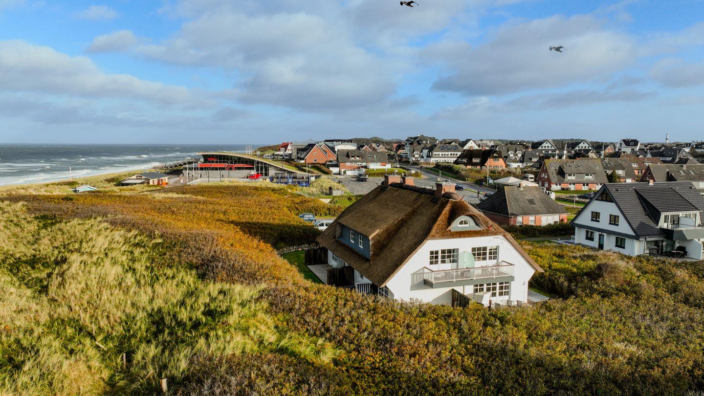 Auf der großen West-Terrasse mit Blick über die Dünen und andere Reetdach-Häuser können Sie sich ausgiebig erholen und Ihre Zeit auf Sylt wunderbar genießen.