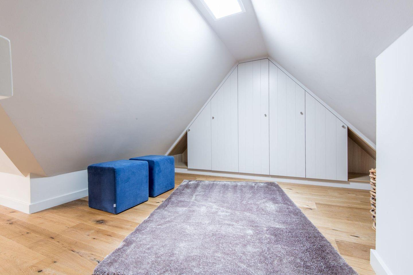 Im Obergeschoss befinden sich zwei stilvoll eingerichtete Schlafzimmer, die für erholsame Nächte sorgen. Das erste Schlafzimmer ist mit einem komfortablen Doppelbett (2 x 80x200 cm), einem geräumigen Einbauschrank und einem TV ausgestattet – ideal für entspannte Stunden und ungestörten Schlaf. Das zweite Schlafzimmer bietet ebenfalls ein bequemes Doppelbett (2 x 80x200 cm) und einen Einbauschrank sowie einen eigenen TV.