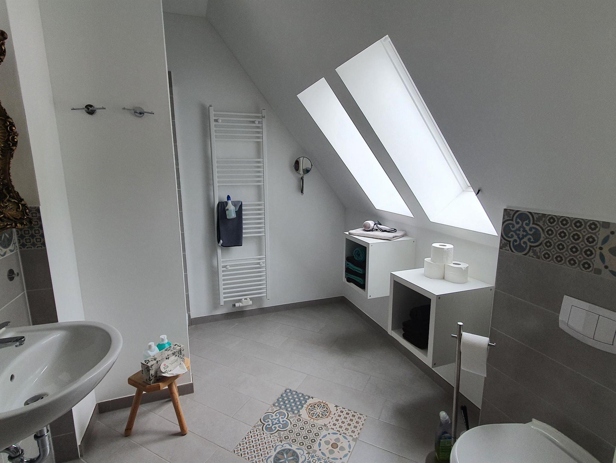 Grosses Ferienhaus (120 m2 auf zwei Etagen, erbaut 2018), komplett ausgestattet. Kaminofen. Grosszügiger Küchen- und Essbereich. Grosser Garten mit schöner Terrasse. Saunafass für bis zu 6 Personen.