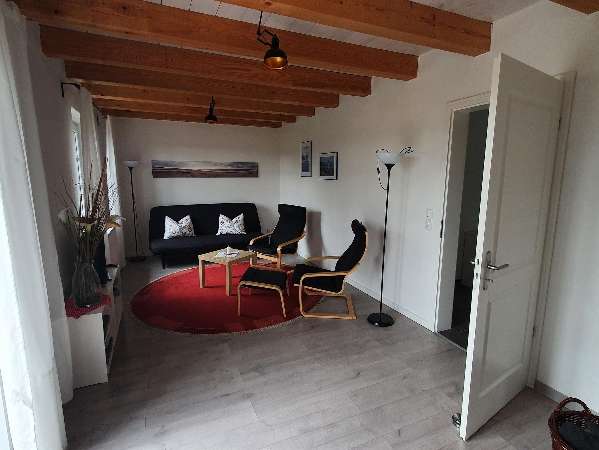 Grosses Ferienhaus (120 m2 auf zwei Etagen, erbaut 2018), komplett ausgestattet. Kaminofen. Grosszügiger Küchen- und Essbereich. Grosser Garten mit schöner Terrasse und Saunafass. Ausgedehntes Rad- und Wanderwegenetz direkt vom Haus aus erreichbar. Einkaufsmöglichkeit auch sonntags im nächsten Dorf in 3km Entfernung.