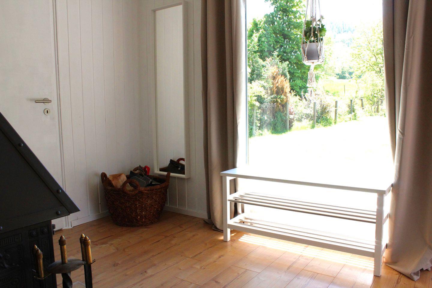 Nach einem ereignisreichen Tag laden der Kamin und das gemütliche Wohnzimmer zum Entspannen ein und auch die Küche ist mit einer Spülmaschine gut ausgestattet. An warmen Tagen kann die Aussicht ins Grüne auf der Terrasse oder im Garten genossen werden.