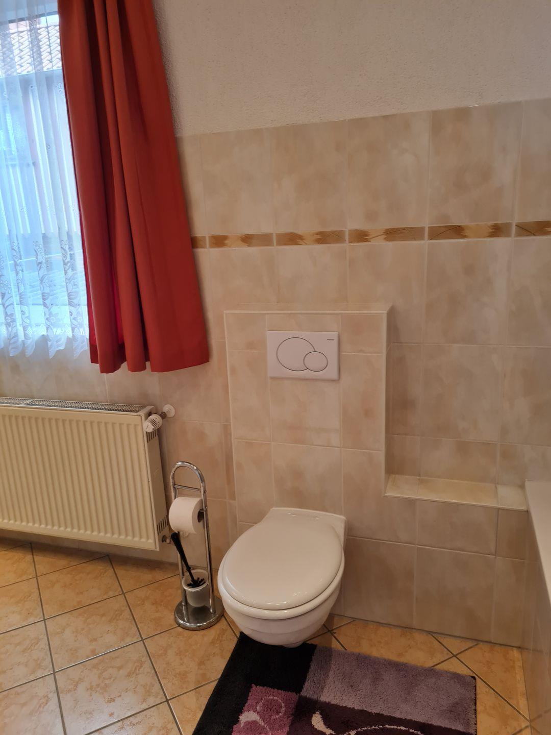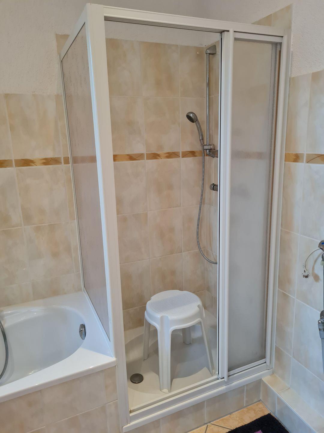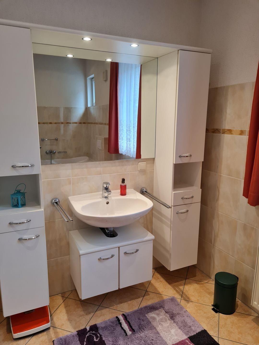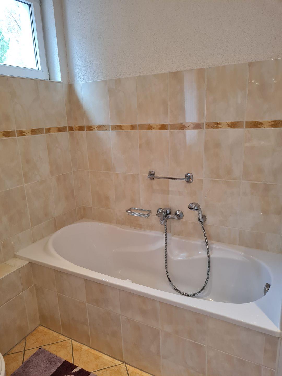 Das Tageslichtbad verfügt über eine Badewanne, Dusche, Toilette und Waschbecken. Im Badezimmer steht auch eine Waschmaschine, die zur Alleinnutzung bereit steht.