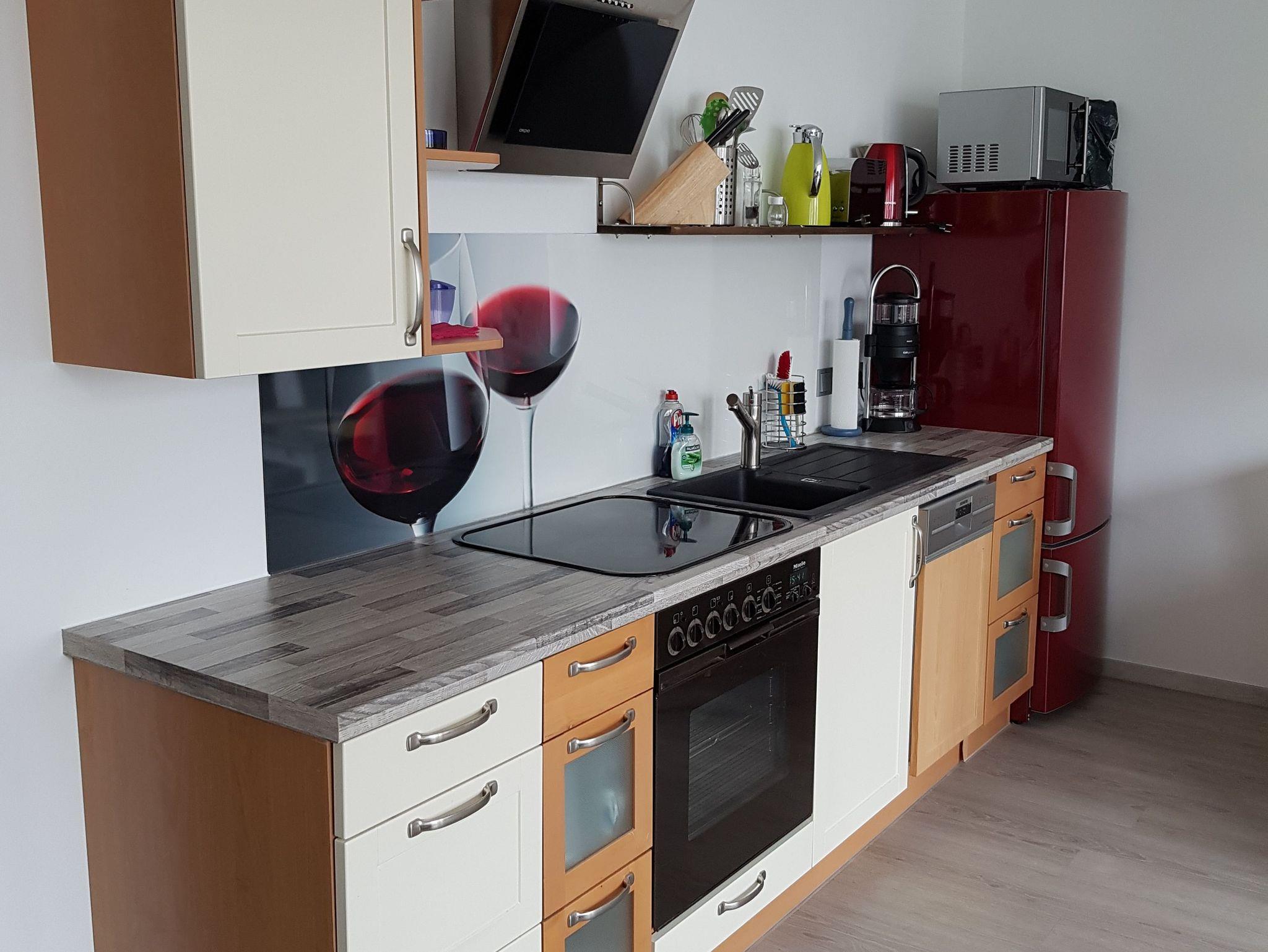 Kaffeemaschine, Toaster, Wasserkocher ect. sind auch vorhanden, sowie eine Spülmaschine und ausreichend Geschirr und Gläser.